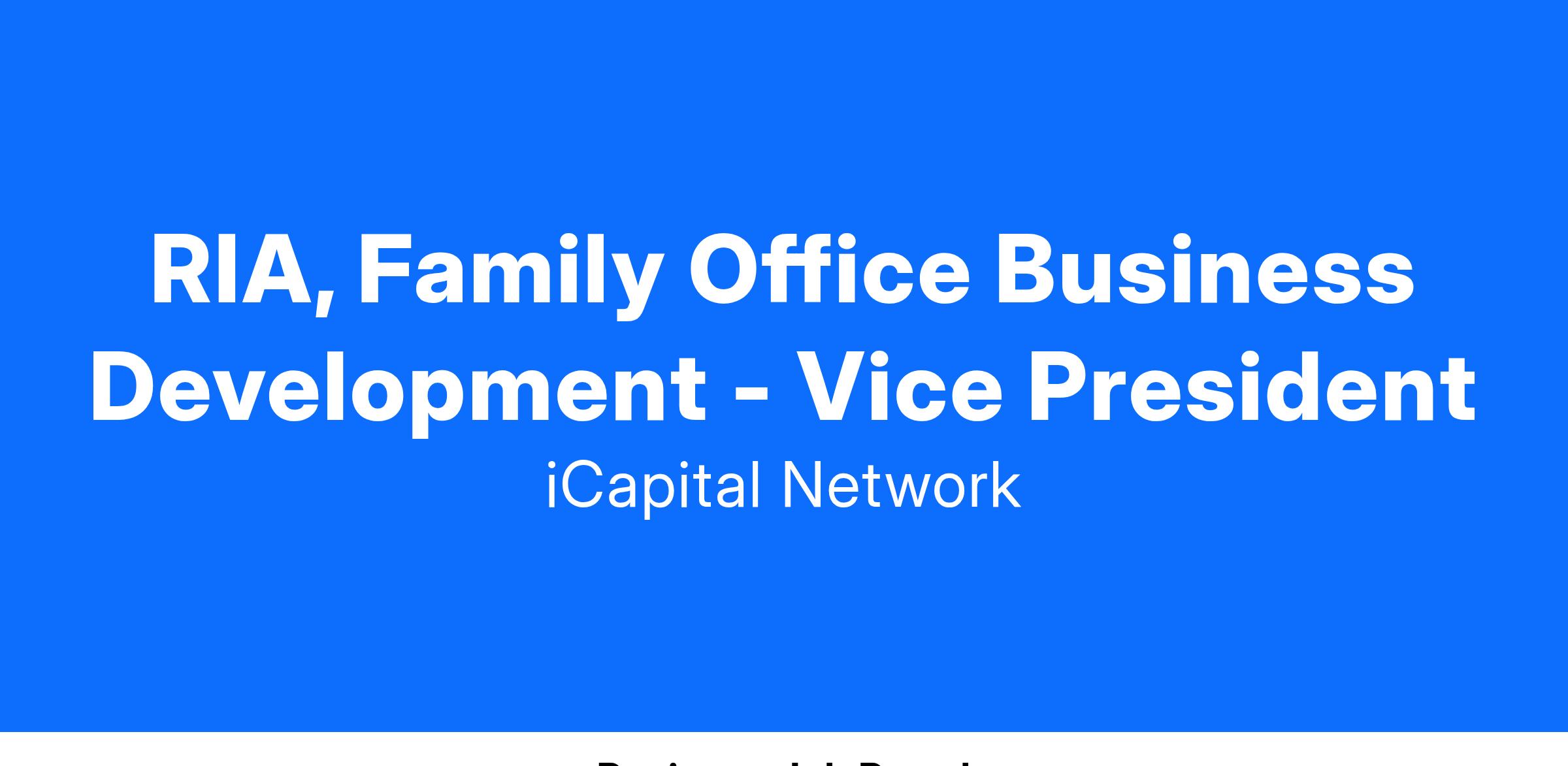 iCapital is seeking a highly motivated, outgoing, and experienced Business Development professional to join the Data Solutions team expanding iCapital’s enterprise presence in the US wealth channel. This team develops relationships with iCapital’s largest clients, and prospects, within the RIA and Family Office channel. The Data Solutions team offers financial reporting services for the family office and wealth management industry.