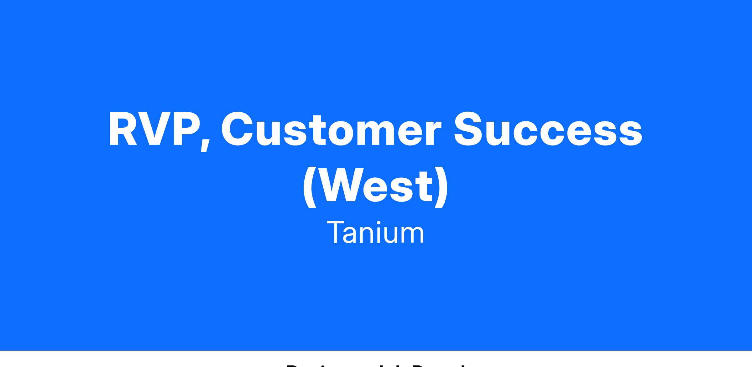 Tanium’s Customer Success function is critical to helping customers receive value from their investment in Tanium and to ensure Tanium maintains its enviable base of high value, loyal customers that rely on Tanium to manage all their endpoints. The RVP, Customer Success role leads a team that is responsible for each customer’s success by leveraging best practices and their technical expertise to ensure adoption of the Tanium platform, leading to renewal and upsell opportunities for their assigned accounts.