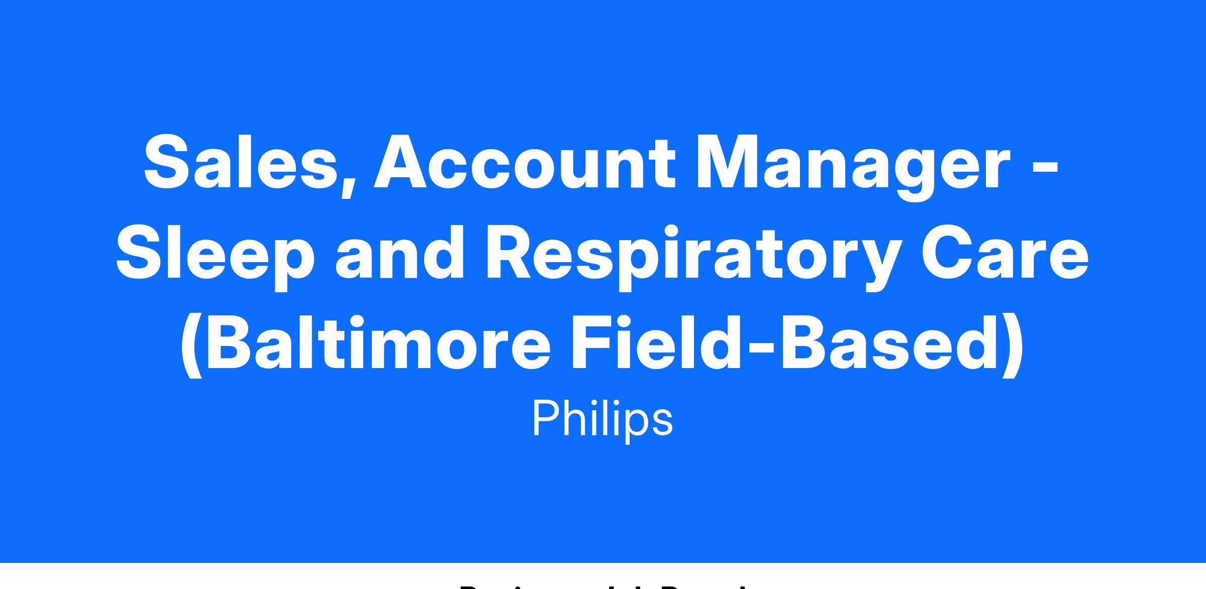 Sales, Account Manager - Sleep and Respiratory Care (Baltimore Field-Based)