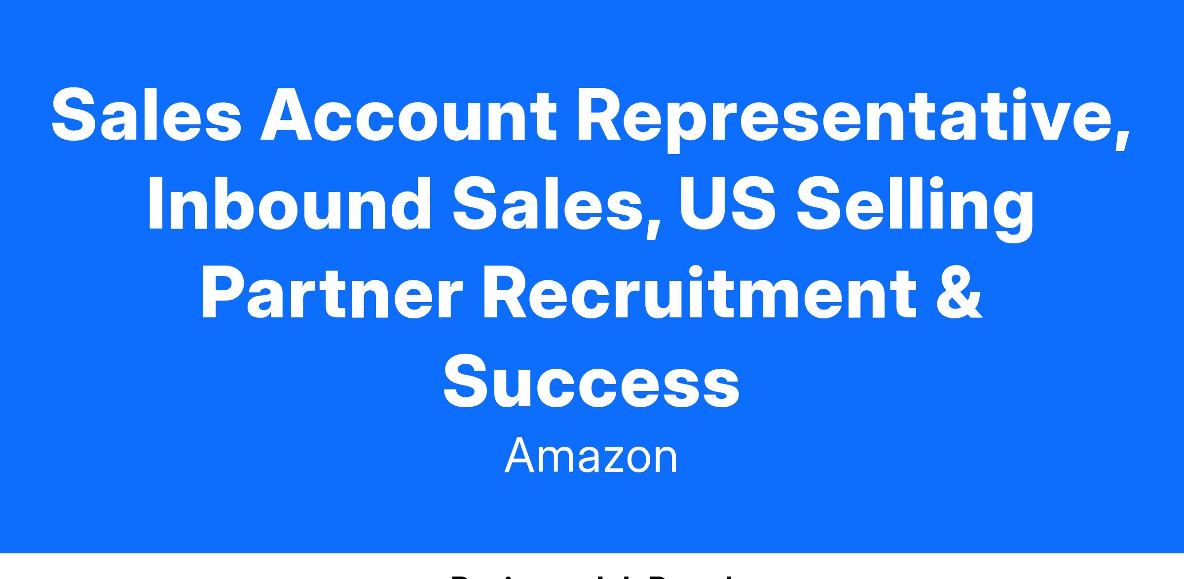 Our expanding team is looking for Sales Account Representatives (ARs) to onboard and develop new SPs. We support their growth and advancement through tailored coaching as they launch and develop their strategy for selling and growing their footprint in the US Amazon Store.