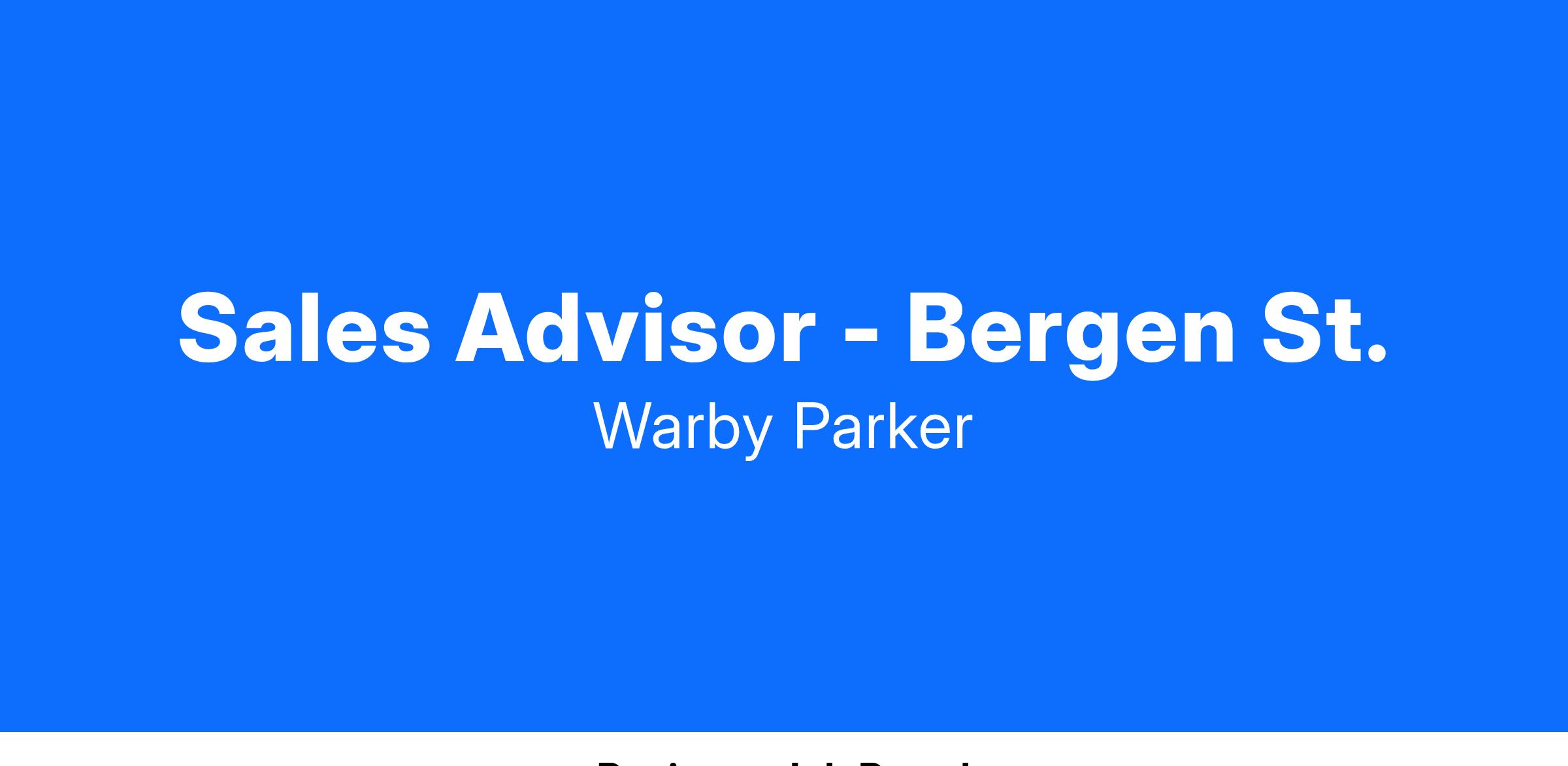 Warby Parker is searching for a well-rounded Sales Advisor to help us deliver the best possible service to each and every one of our customers. In supporting our retail locations across the country (and Canada!), Advisors have a direct, immediate impact on the success of Warby Parker through customer interactions, process ideation and improvement, and various special projects. We've grown to who we are today thanks in no small part to them! In this role, you'll get to show folks firsthand what Warby Parker is all about while making glasses shopping a goosebump-inducing experience. Sound cool? Read on!