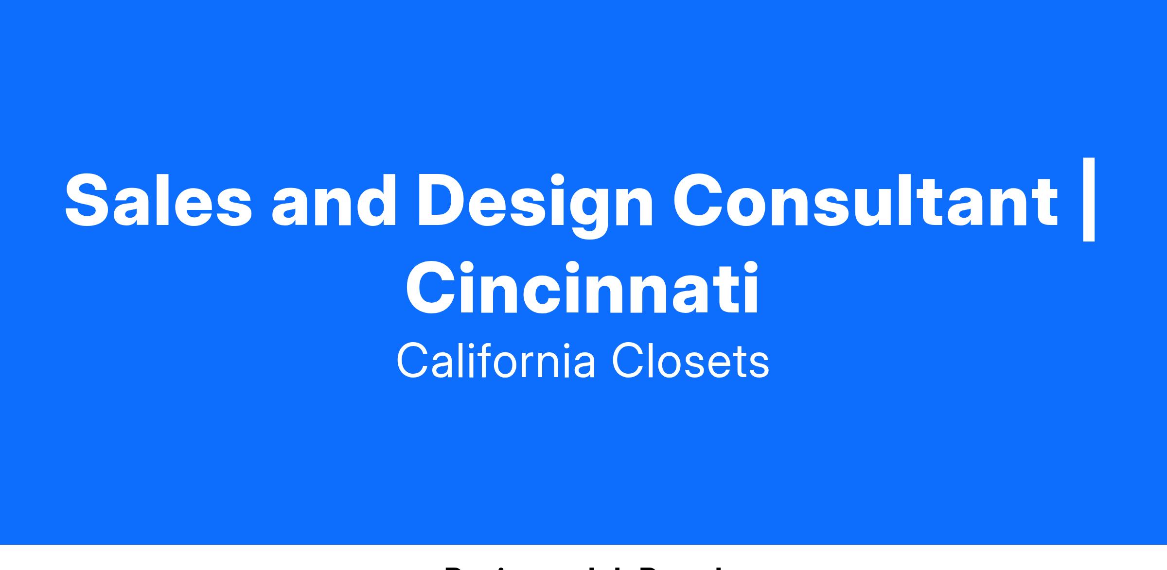 The Design and Sales Consultant provides an in-home customer experience by designing and selling cabinetry, closets, home offices, garages, media centers, and other storage solutions for homes. This position includes selling, designing, measuring home spaces, and providing an exceptional experience.