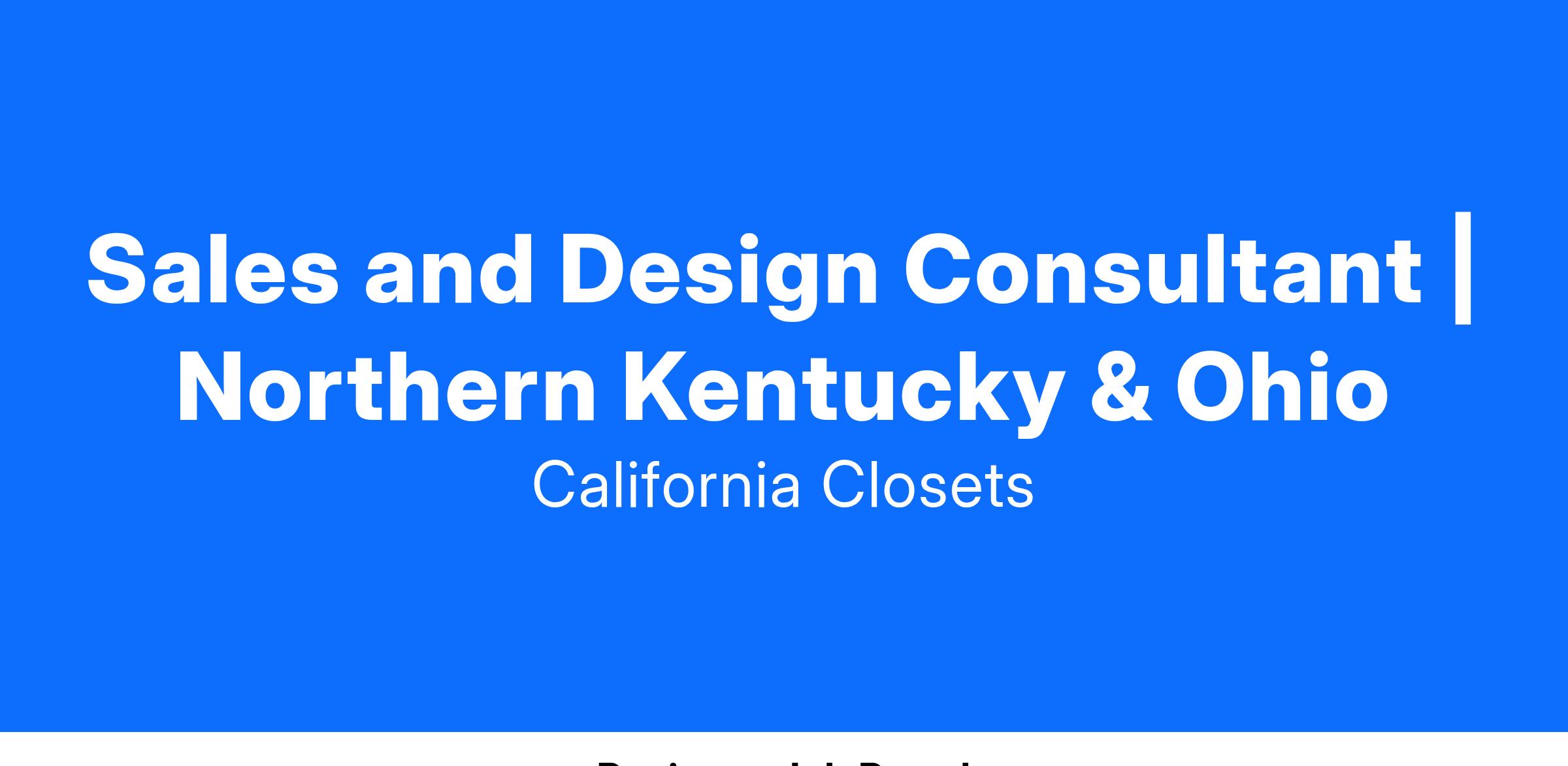 The Design and Sales Consultant provides an in-home customer experience by designing and selling cabinetry, closets, home offices, garages, media centers, and other storage solutions for homes. This position includes selling, designing, measuring home spaces, and providing an exceptional experience.