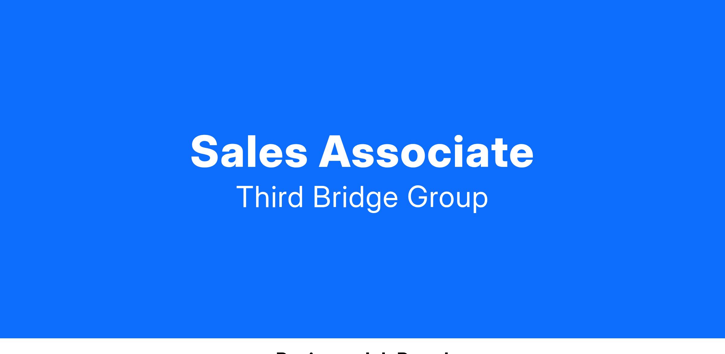 The Sales Associate is great opportunity to build a foundation in sales, develop business acumen, deepen the understanding of sales process, and develop lead generation skills within a Sales organization. You will be responsible for supporting the new client acquisition process for Third Bridge and partner with the Sales Reps to create and drive revenue.