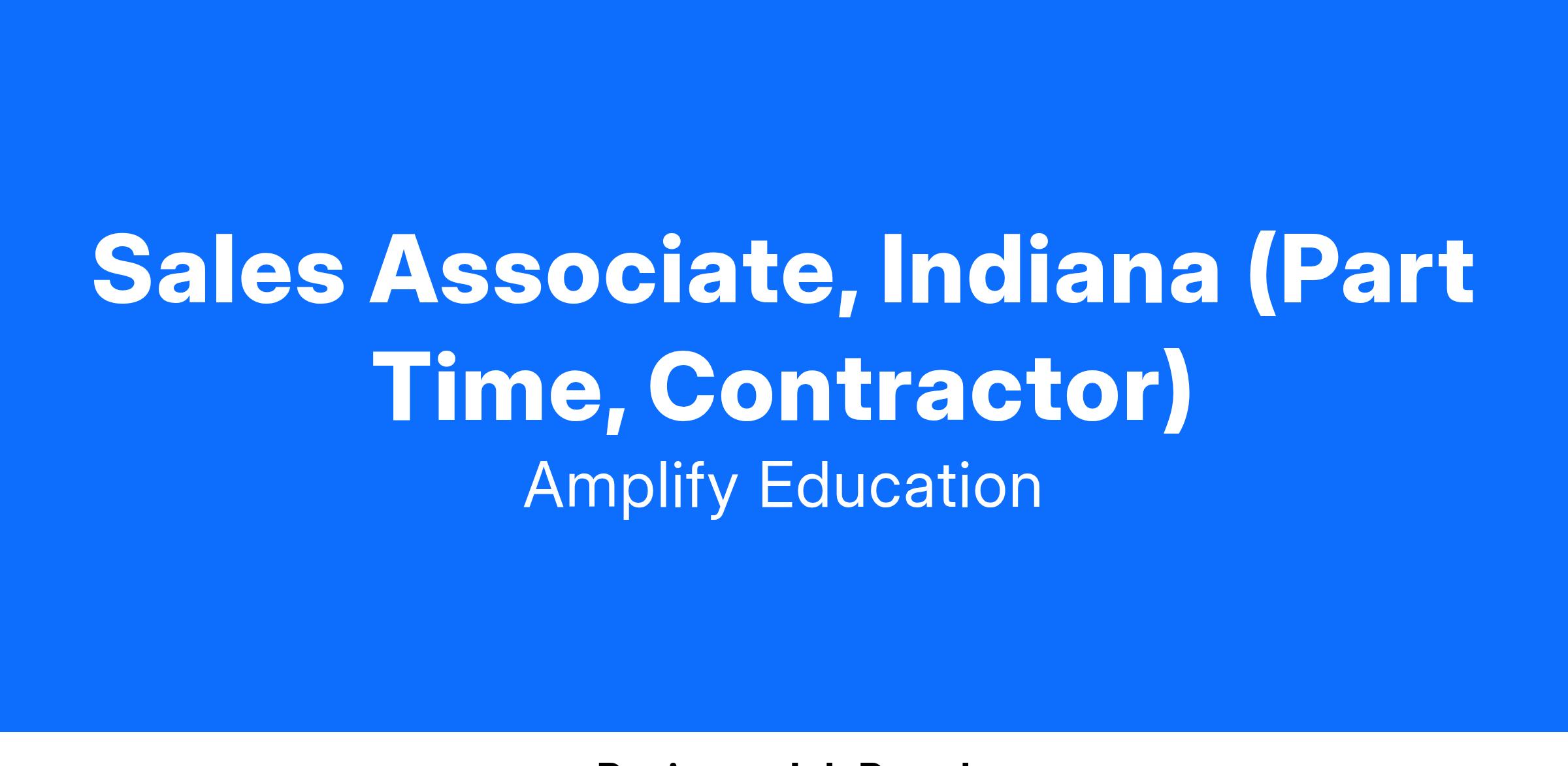 Amplify is seeking a part-time Sales Associate in Indiana to partner with our Sales Team. Are you a quick learner and a self-starter who enjoys technology? Are you looking to make a difference by sharing highly effective, outstanding programs with other educators? Do you have a particular love of K-12 curriculum?
