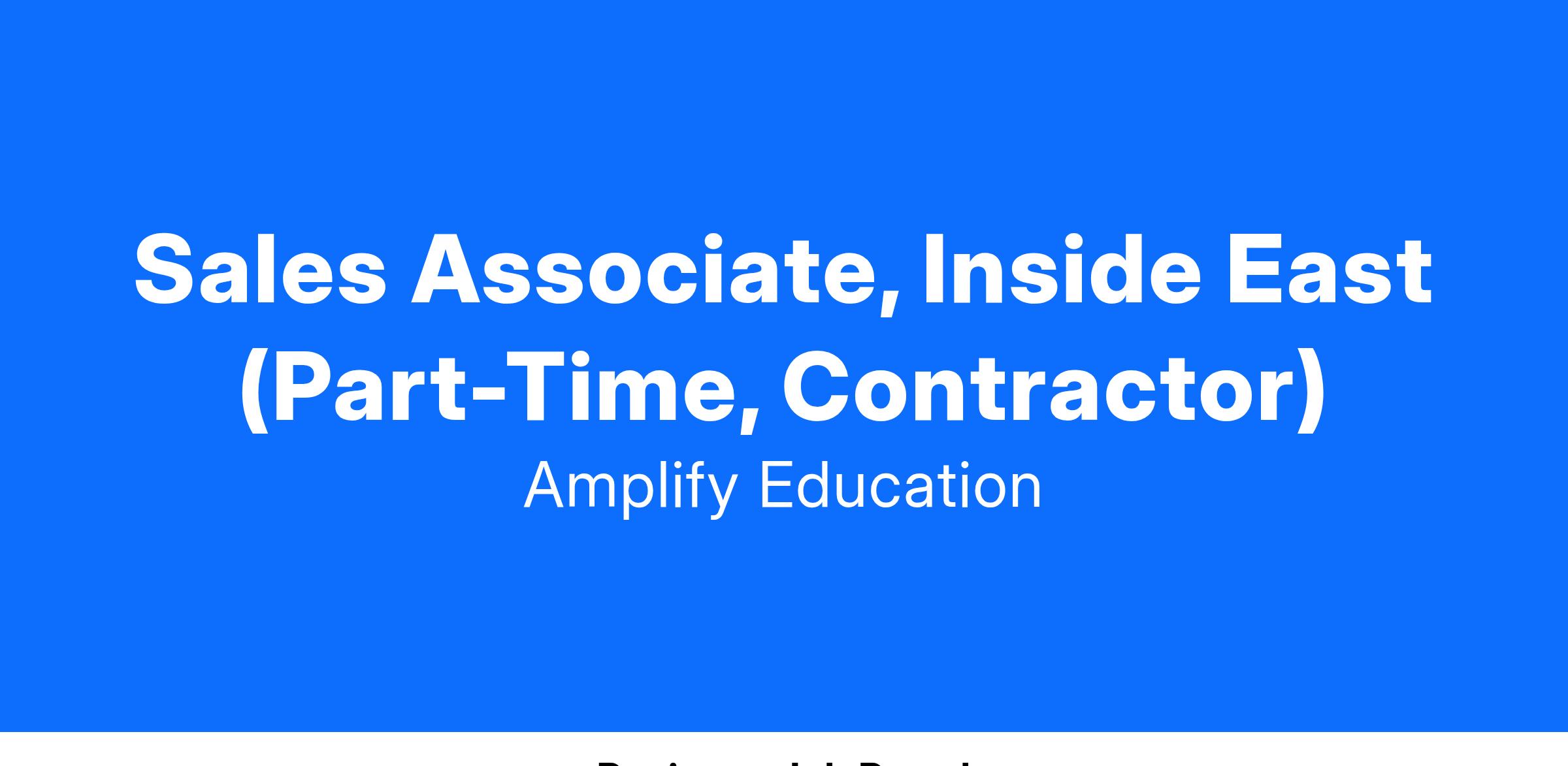 Amplify is seeking a part-time Sales Associate to partner with our Sales Team. Are you a quick learner and a self-starter who enjoys technology? Are you looking to make a difference by sharing highly effective, outstanding programs with other educators? Do you have a particular love of K-12 curriculum?
