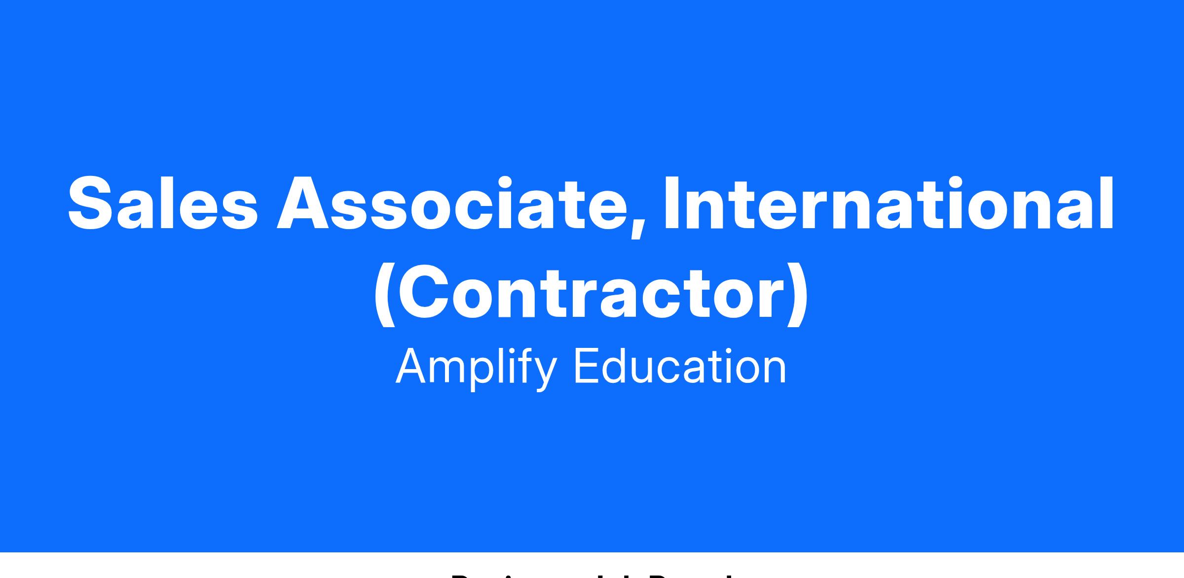 Amplify is at the forefront of transforming education through innovative technology, empowering educators and students worldwide. We are seeking a dynamic Sales Associate to join our International Sales Team. In this role, you’ll work directly with educators and decision-makers in K-12 schools globally, helping them make informed choices about Amplify’s cutting-edge educational solutions.