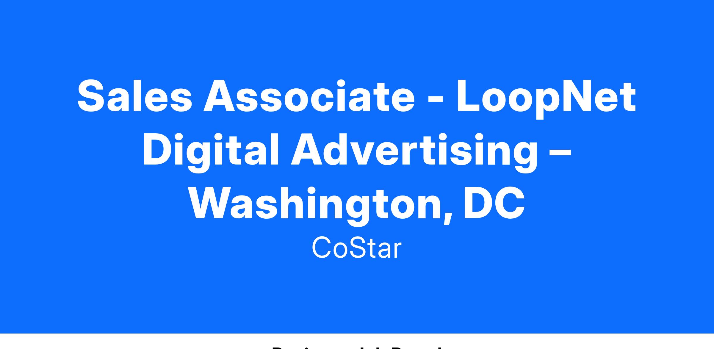 As a Sales Executive with LoopNet you will be part of a growth-oriented, innovative company and represent the industry’s most sophisticated digital advertising and marketing solutions. You will partner with the world’s top owners and brokers to develop a comprehensive digital marketing strategy to showcase and differentiate their portfolio of properties online. Key to your success will be your ability to build long-lasting, service-focused, customer relationships. You will achieve this in part by advising on product frequency, reach and brand efficacy and highlighting return on investment using our proprietary analytic tools and reporting capabilities. Day to day, you will leverage CoStar Group’s deep knowledge and expertise in the Commercial Real Estate industry to build your client portfolio by prospecting, studying industry trends and news, and conducting effective product demonstrations.