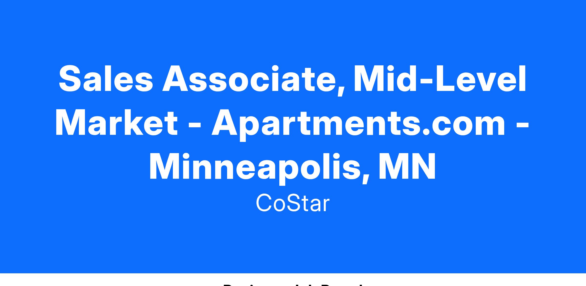 Apartments.com is the nation’s #1 rental marketplace for owners, property managers and consumers. Apartments.com is the network that millions of renters every year rely on to find their new place, is continuing to grow our industry-leading sales force. We provide apartment Property Managers and Owners with a platform to market their property listings and the industry’s most comprehensive virtual tools to attract the most and highest-quality renters. The Apartments.com Network includes Apartments.com, ForRent.com, ApartmentFinder.com, ApartmentHomeLiving.com, and eight other leading rental sites. Our suite of services includes digital advertising, social and reputation management, and market analytic solutions which delivers innovative tools for our customers. We are looking for passionate sales professionals to build long-lasting, service-focused customer relationships.