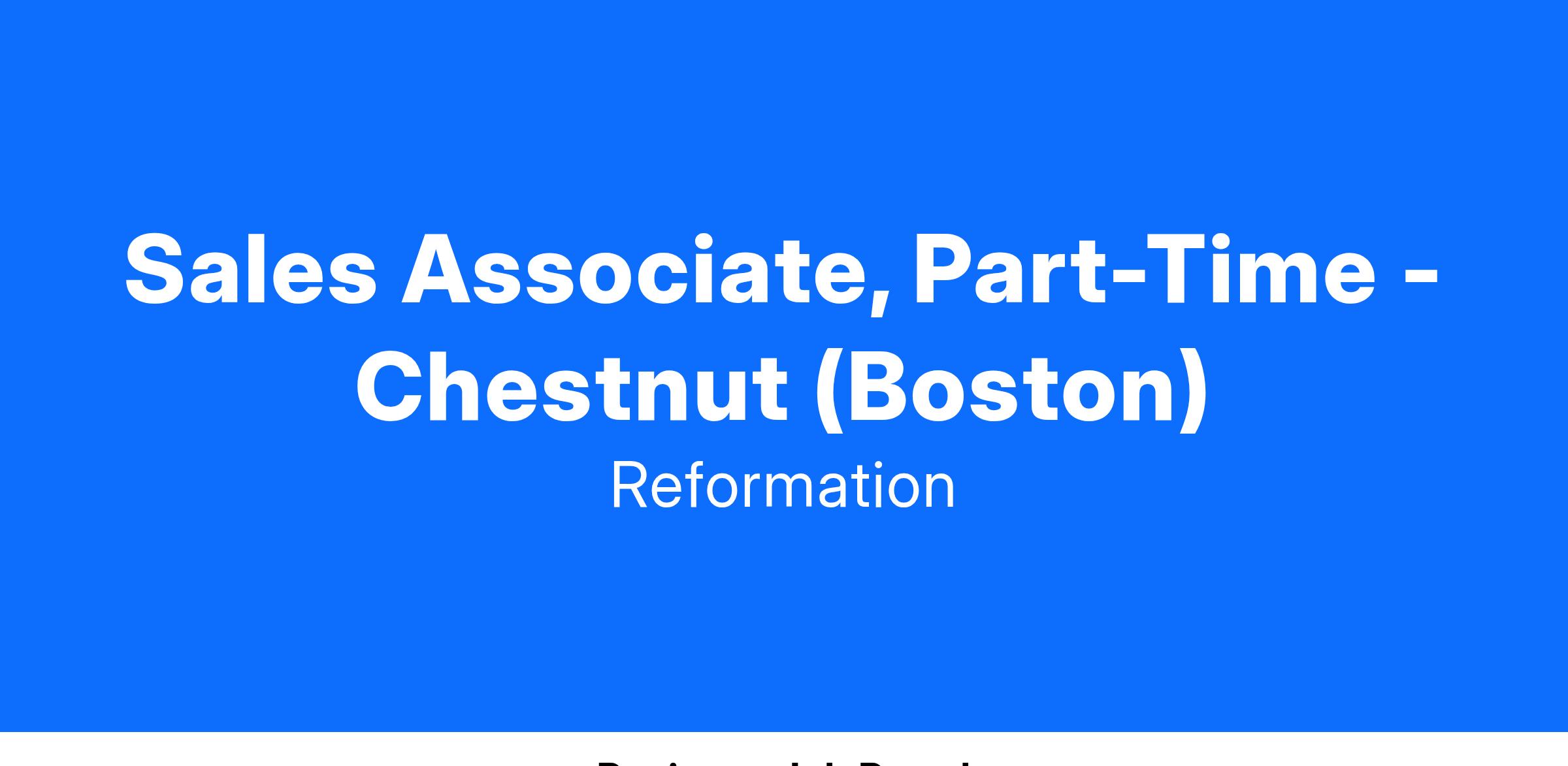No position at Reformation is about the status quo, every team member is passionate about building a company rooted in excellence. Obsessed with customers and sustainability we use tech to create a unique interaction between our customers, employees, and the Reformation brand. The Associate will execute all efforts required to achieve individual sales goals.