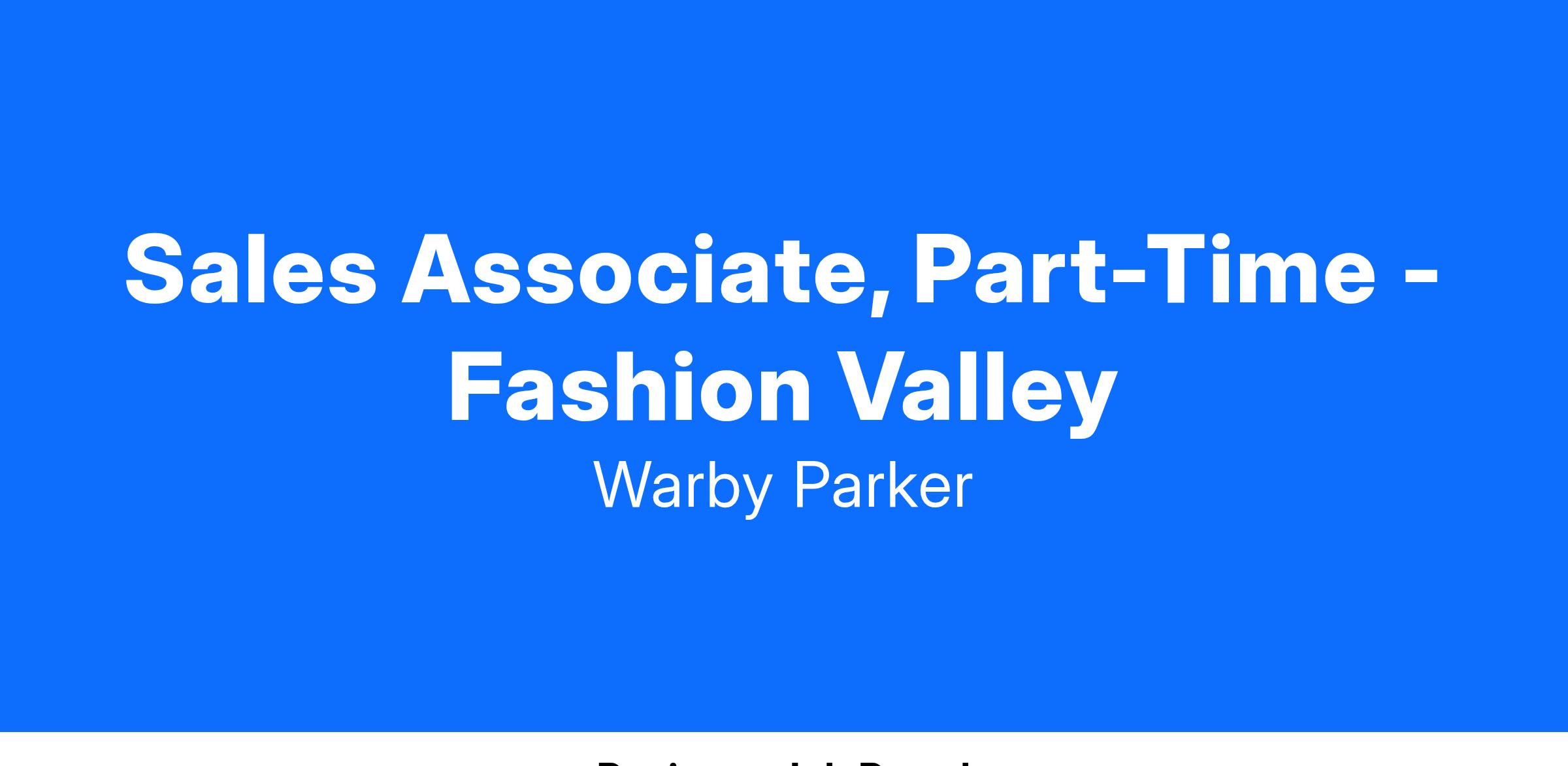Warby Parker is searching for a well-rounded Sales Advisor to help us deliver the best possible service to each and every one of our customers. (At other brands, you might see similar roles called Sales Associate.) In supporting our retail locations across the country (and Canada!), Advisors have a direct, immediate impact on the success of Warby Parker through customer interactions, process ideation and improvement, and various special projects. We've grown to who we are today thanks in no small part to them! In this role, you'll get to show folks firsthand what Warby Parker is all about while making glasses shopping a goosebump-inducing experience. Sound cool? Read on!