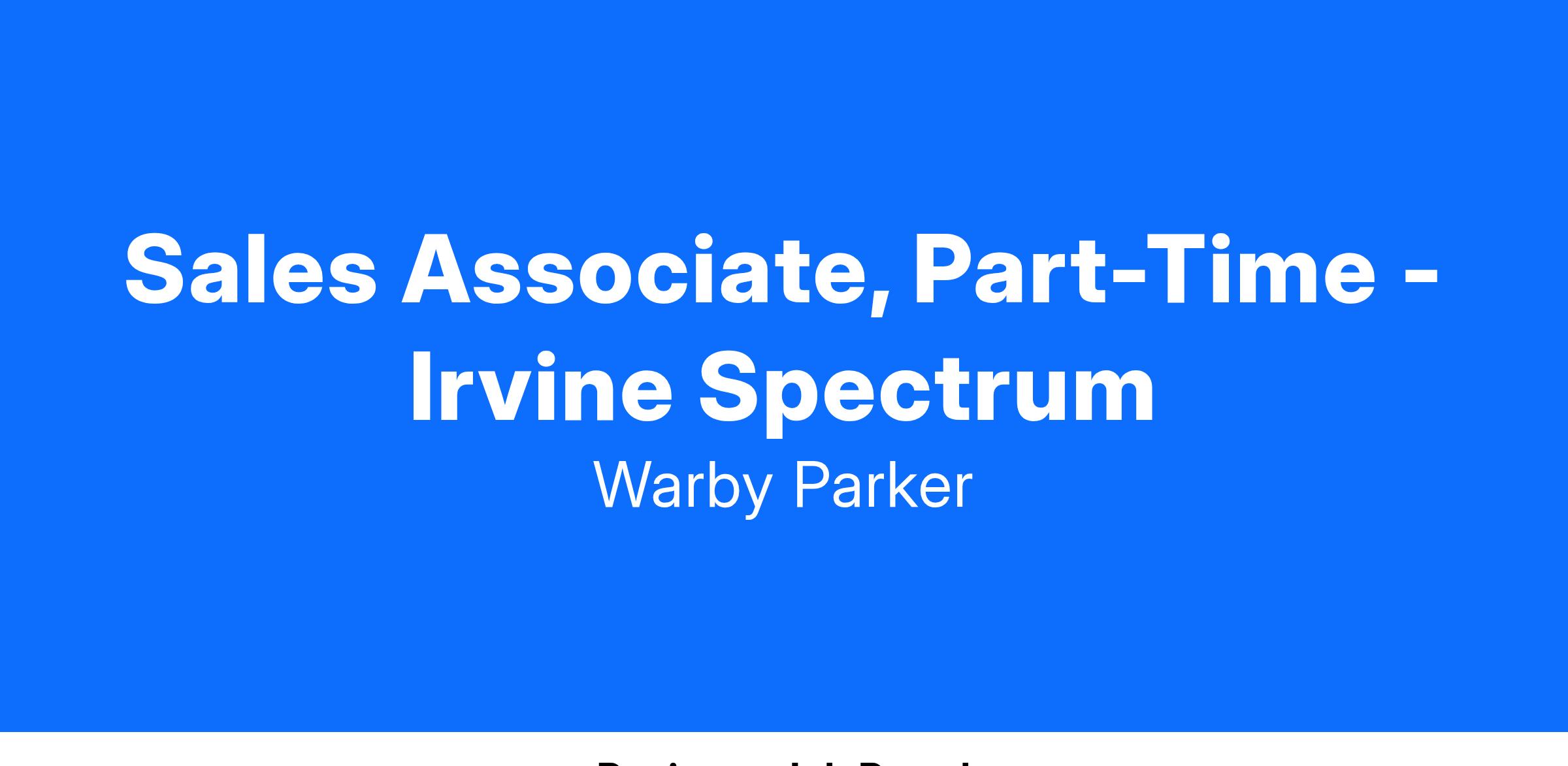 Warby Parker is searching for a well-rounded Sales Advisor to help us deliver the best possible service to each and every one of our customers. (At other brands, you might see similar roles called Sales Associate.) In supporting our retail locations across the country (and Canada!), Advisors have a direct, immediate impact on the success of Warby Parker through customer interactions, process ideation and improvement, and various special projects. We've grown to who we are today thanks in no small part to them! In this role, you'll get to show folks firsthand what Warby Parker is all about while making glasses shopping a goosebump-inducing experience. Sound cool? Read on!