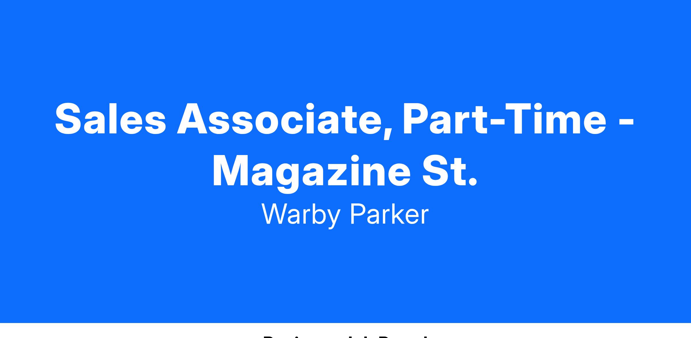 Warby Parker is searching for a well-rounded Sales Advisor to help us deliver the best possible service to each and every one of our customers. (At other brands, you might see similar roles called Sales Associate.) In supporting our retail locations across the country (and Canada!), Advisors have a direct, immediate impact on the success of Warby Parker through customer interactions, process ideation and improvement, and various special projects. We've grown to who we are today thanks in no small part to them! In this role, you'll get to show folks firsthand what Warby Parker is all about while making glasses shopping a goosebump-inducing experience. Sound cool? Read on!