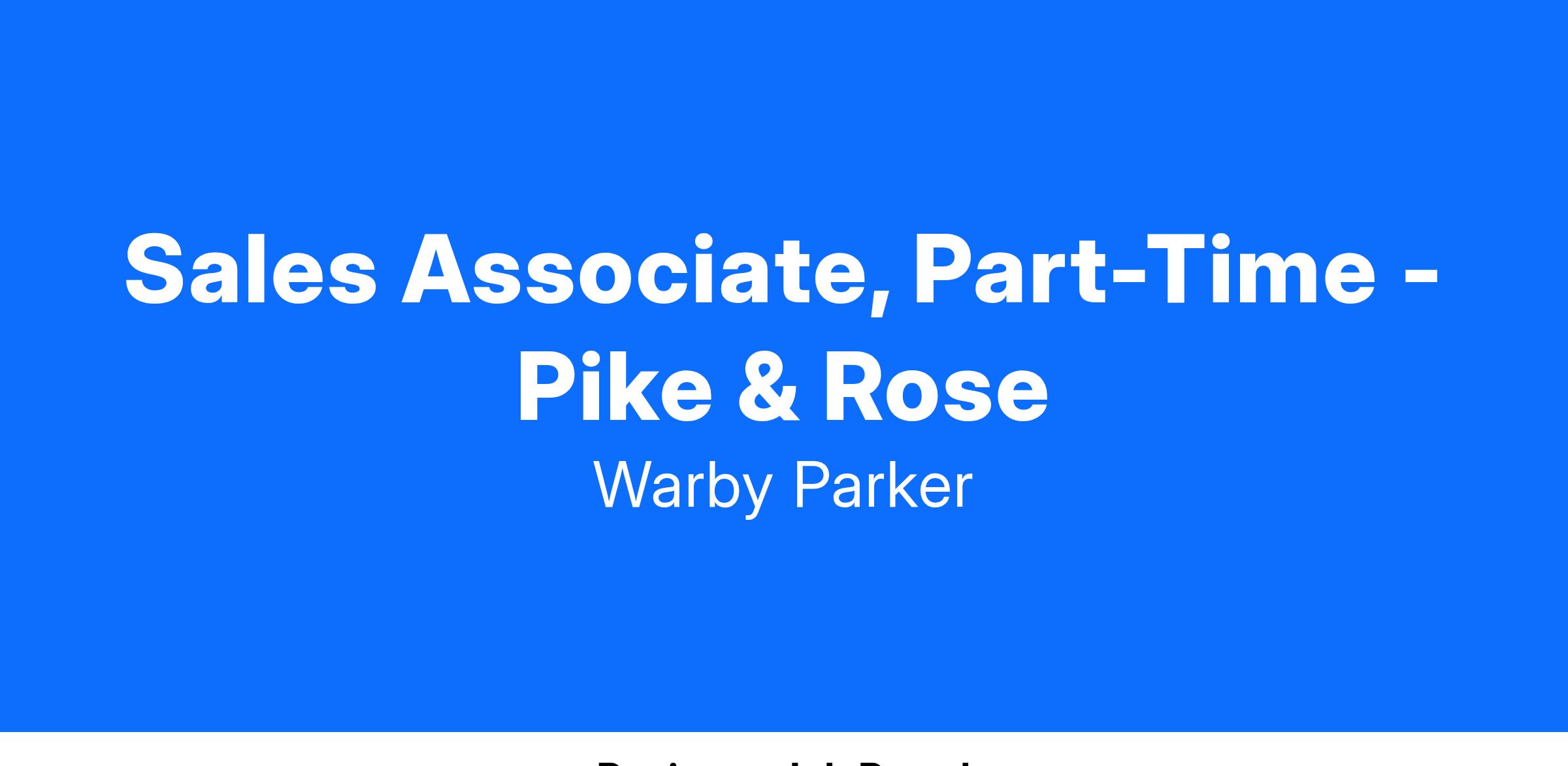 Warby Parker is searching for a well-rounded Sales Advisor to help us deliver the best possible service to each and every one of our customers. (At other brands, you might see similar roles called Sales Associate.) In supporting our retail locations across the country (and Canada!), Advisors have a direct, immediate impact on the success of Warby Parker through customer interactions, process ideation and improvement, and various special projects. We've grown to who we are today thanks in no small part to them! In this role, you'll get to show folks firsthand what Warby Parker is all about while making glasses shopping a goosebump-inducing experience. Sound cool? Read on!