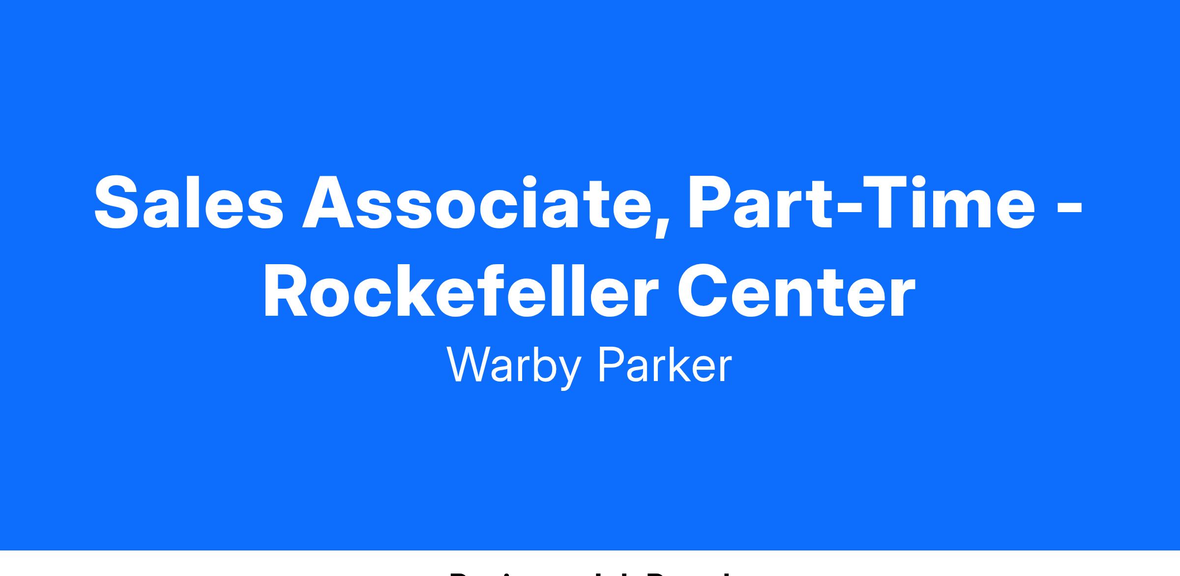 Warby Parker is searching for a well-rounded Sales Advisor to help us deliver the best possible service to each and every one of our customers. (At other brands, you might see similar roles called Sales Associate.) In supporting our retail locations across the country (and Canada!), Advisors have a direct, immediate impact on the success of Warby Parker through customer interactions, process ideation and improvement, and various special projects. We've grown to who we are today thanks in no small part to them! In this role, you'll get to show folks firsthand what Warby Parker is all about while making glasses shopping a goosebump-inducing experience. Sound cool? Read on!