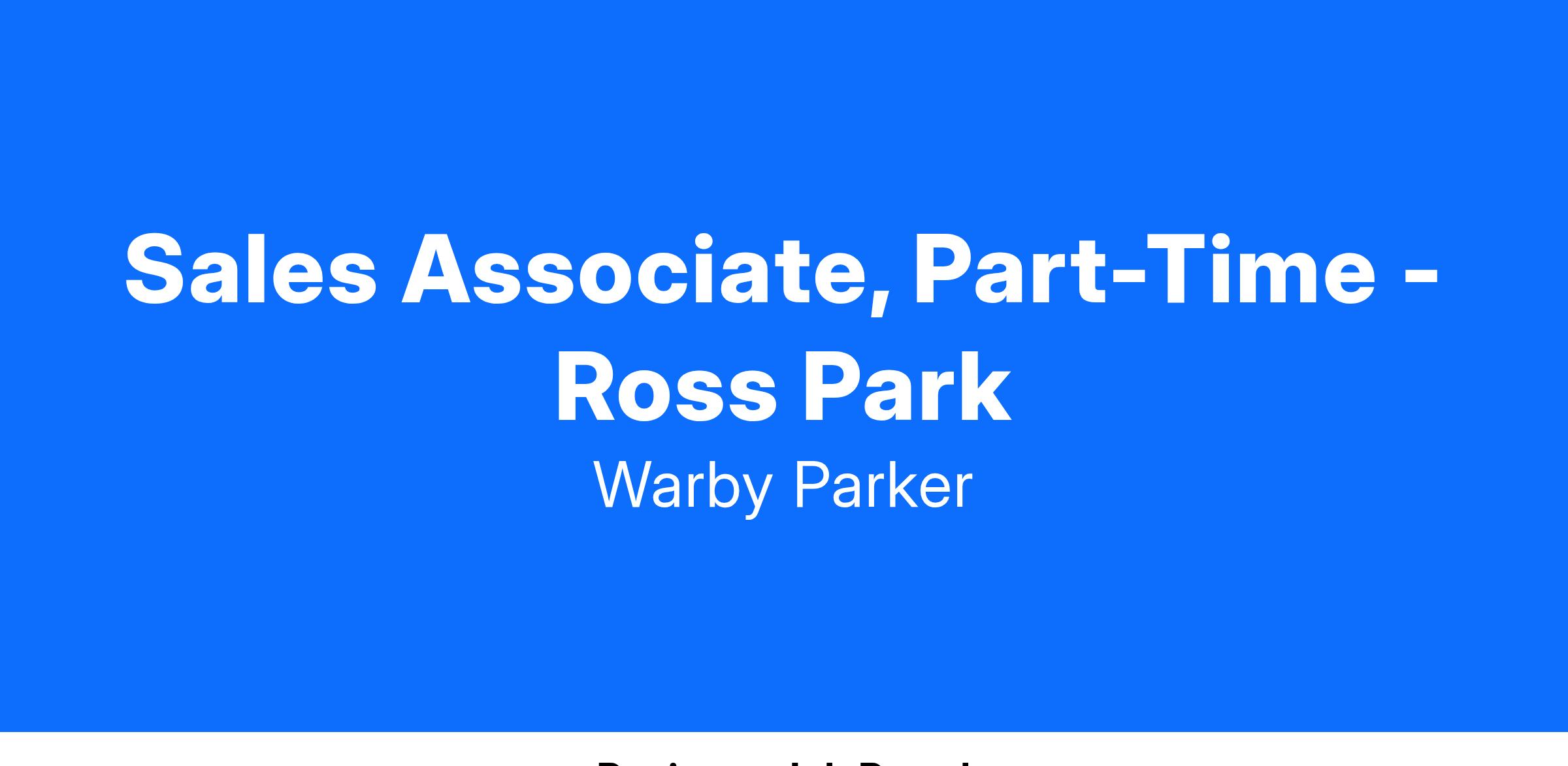 Warby Parker is searching for a well-rounded Sales Advisor to help us deliver the best possible service to each and every one of our customers. (At other brands, you might see similar roles called Sales Associate.) In supporting our retail locations across the country (and Canada!), Advisors have a direct, immediate impact on the success of Warby Parker through customer interactions, process ideation and improvement, and various special projects. We've grown to who we are today thanks in no small part to them! In this role, you'll get to show folks firsthand what Warby Parker is all about while making glasses shopping a goosebump-inducing experience. Sound cool? Read on!