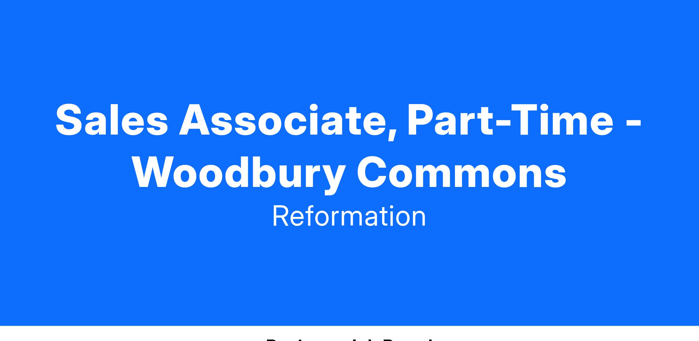 No position at Reformation is about the status quo, every team member is passionate about building a company rooted in excellence. Obsessed with customers and sustainability we use tech to create a unique interaction between our customers, employees, and the Reformation brand. The Associate will execute all efforts required to achieve individual sales goals.