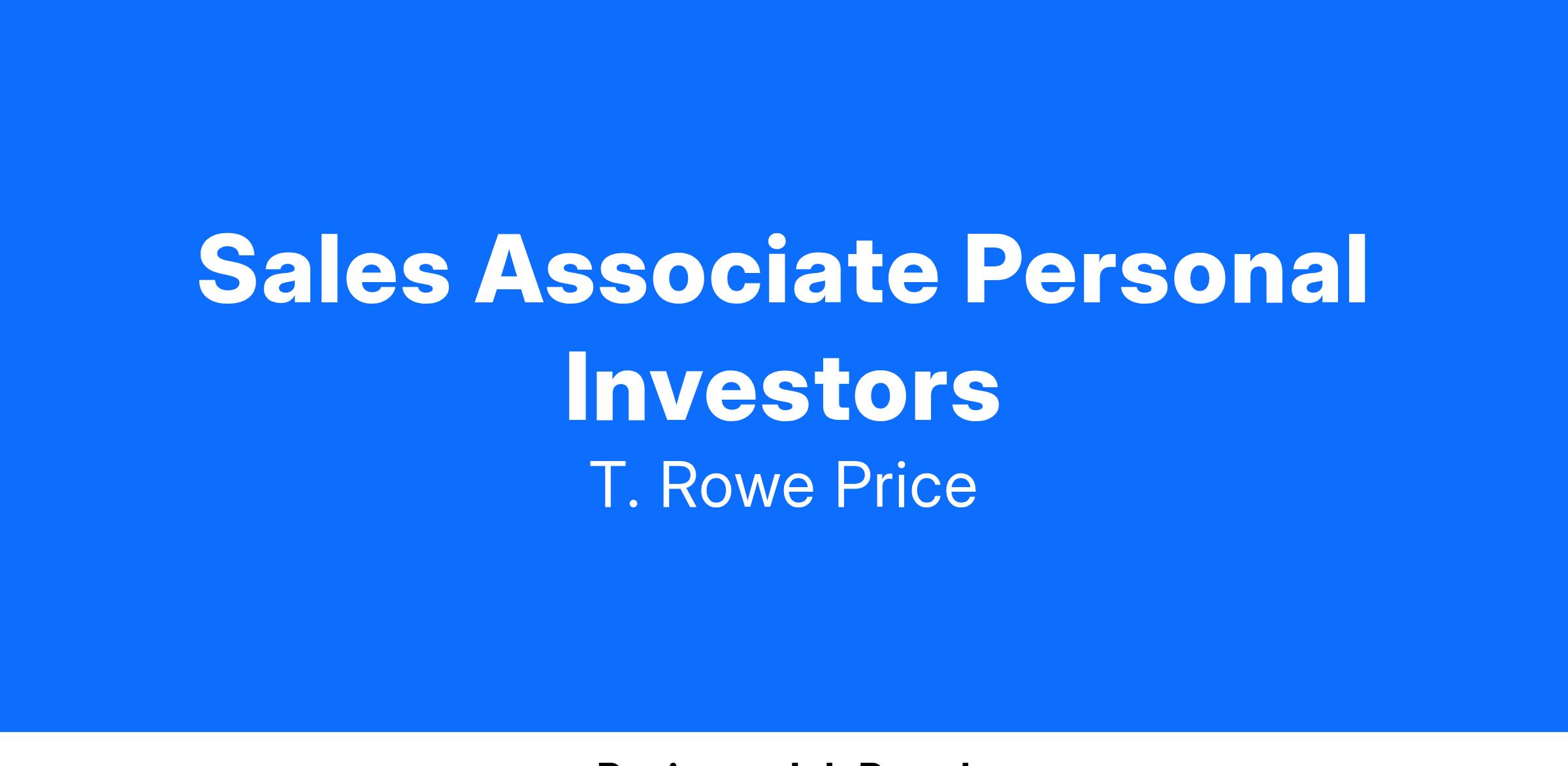 As a Sales Associate Personal Investors, you will provide education and/or guidance to T. Rowe Price’s Core Personal Investors. The primary of objective is to drive net new flows and retain assets within the Individual Investors organization. Our consistently successful Sales Associates are focused on helping clients achieve their short- and long-term investment and financial planning goals along with ownership of their individual success in a collaborative, supportive team-oriented environment. Join our team and you will receive dedicated paid time and resources to support you through a successful licensing process.