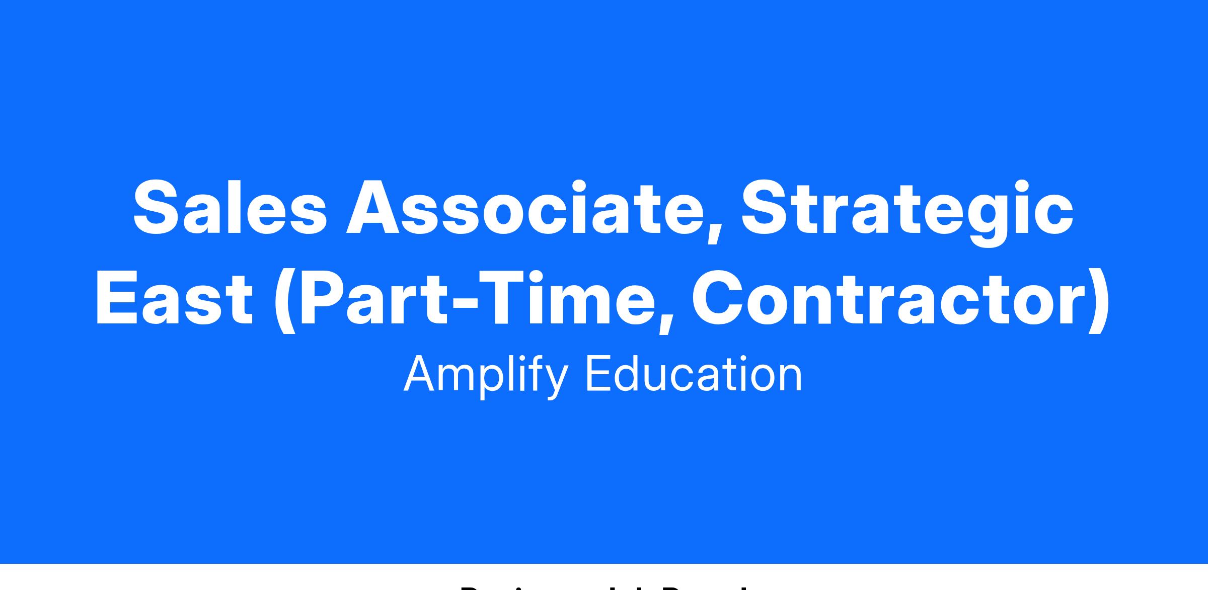 Amplify is seeking a part-time Sales Associate to partner with our Sales Team. Are you a quick learner and a self-starter who enjoys technology? Are you looking to make a difference by sharing highly effective, outstanding programs with other educators? Do you have a particular love of K-12 curriculum?