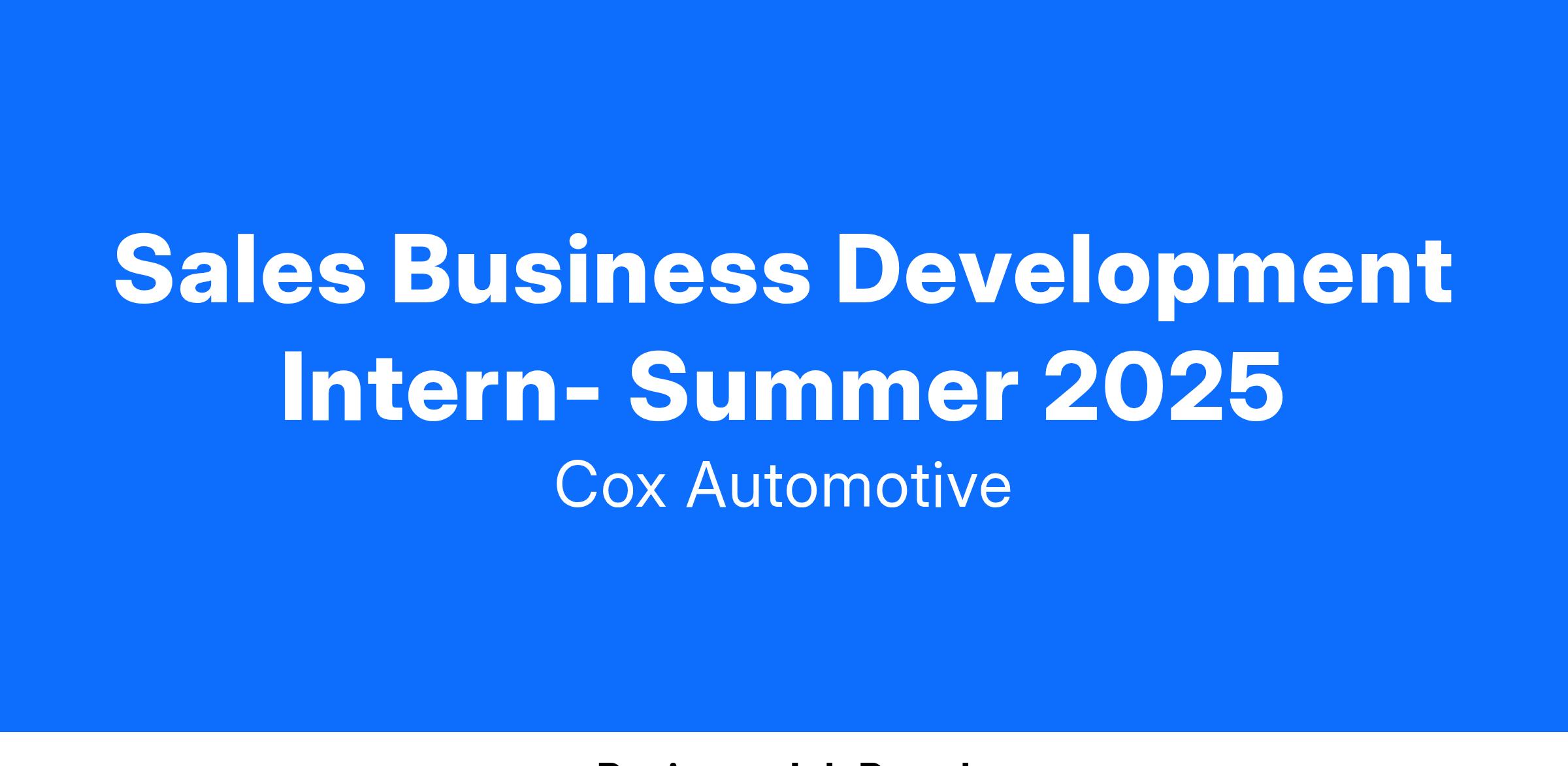 The Sales Business Development internship program is designed to attract talented college students to Cox, providing them with a foundational step toward building a successful career within a dynamic and innovative company. The program will emphasize the development of essential professional selling skills, including prospecting, needs discovery, tool utilization, and delivering compelling sales presentations for our full suite of services. Participants will gain valuable exposure to the Cox Business and RapidScale cultures, while benefiting from mentorship and coaching by Cox Business leadership to excel in a fast-paced sales environment.
