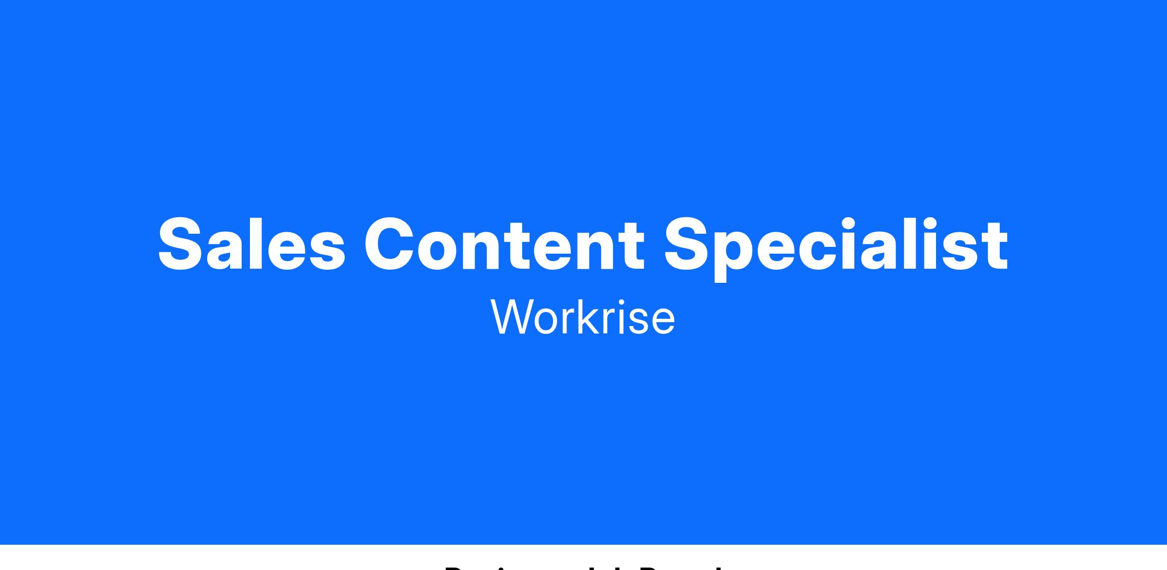 Workrise is hiring a talented Sales Content Specialist to join the Revenue Operations team. You will play a pivotal role in the sales process - helping to arm the sales team with the knowledge and tools needed to engage with potential customers and close deals effectively. This role is integral to the sales process, requiring strategic planning, project management, and collaboration with cross-functional teams to craft persuasive proposals that drive business growth.