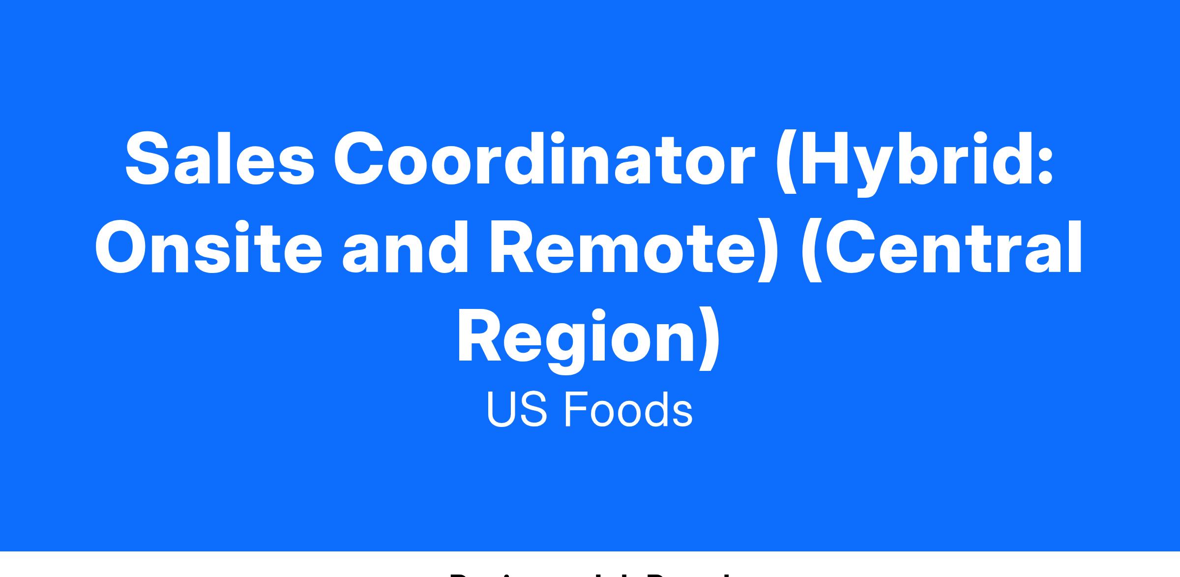 This position has been segmented as hybrid meaning the work is a combination of approximately 90 percent remote/virtual and 10 percent onsite at distribution center offices located anywhere in the Central Region of the United States as follows: Bismarck ND, Grand Forks ND, Plymouth MN, Milwaukee WI, Chicago IL, Streator IL, Iowa City IA, St Louis MO, Salem MO, Omaha NE, Grand Island NE, Kansas City KS, Loveland CO, Denver CO, Oklahoma City OK, Dallas TX, Austin TX, Houston TX, within a 50 mile distance to the listed Distribution Offices.Ready to build a career with a company that’s leading the foodservice industry?