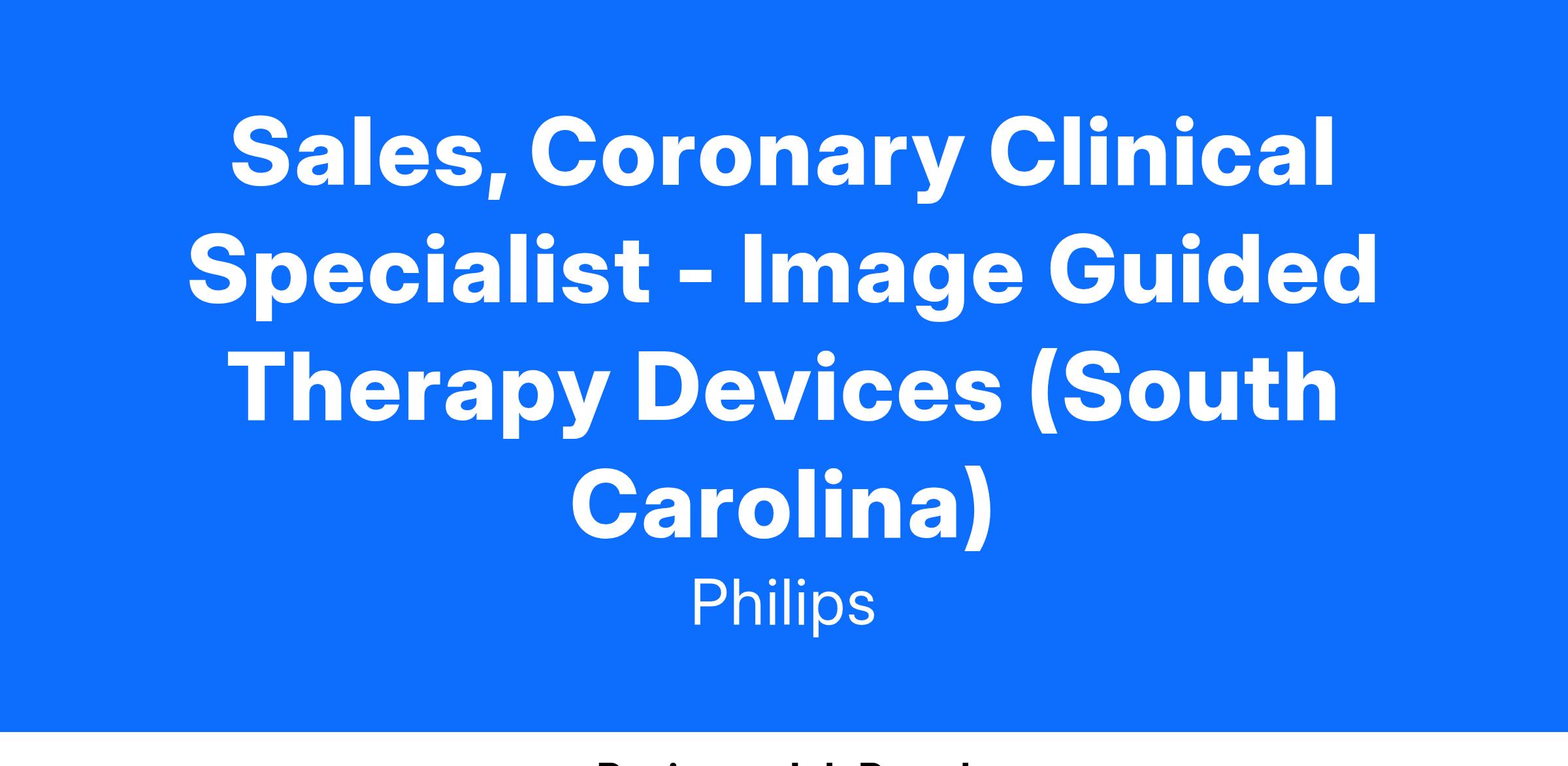 Coronary Clinical Specialist - Image Guided Therapy Devices
