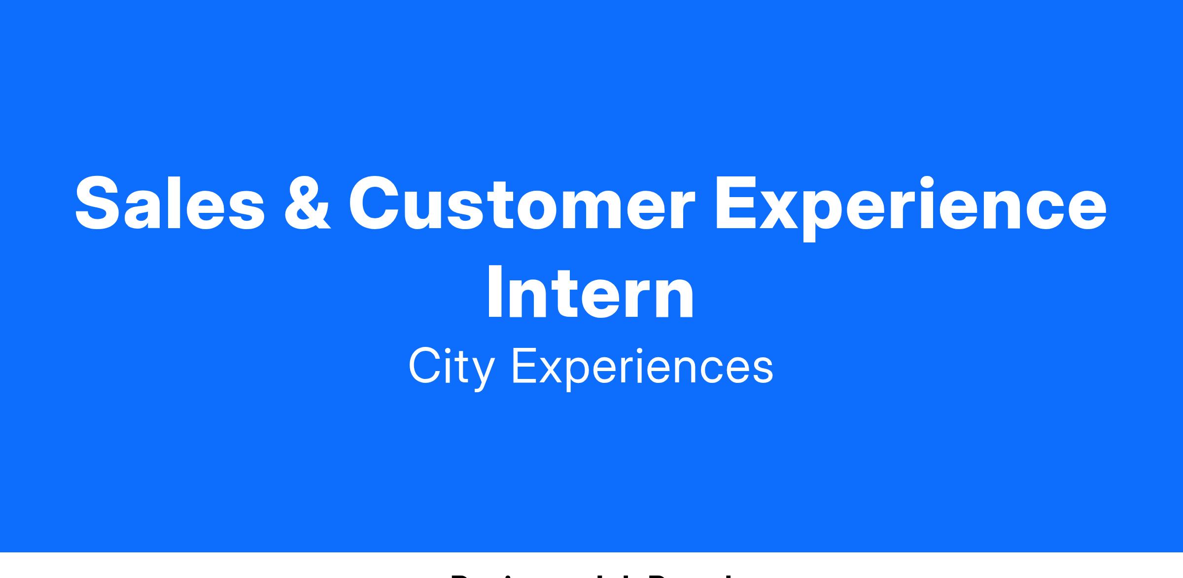 City Experiences is seeking a Sales & Customer Experience Intern for our Business Operations.