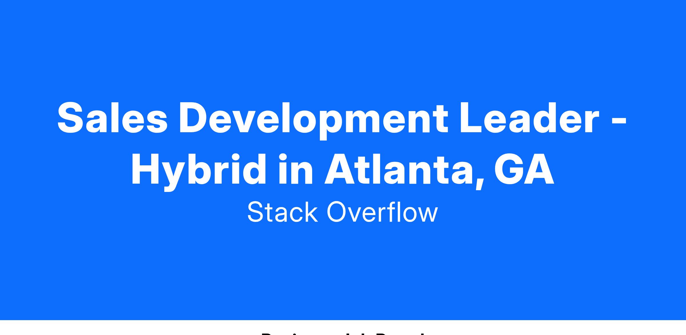 The goal of the SDR team is to work in partnership with Sales & Marketing to create and convert demand into opportunities and pipeline for Stack Overflow’s suite of Enterprise Products. This role will report to the Senior Director of Demand Generation as a fully remote position.
