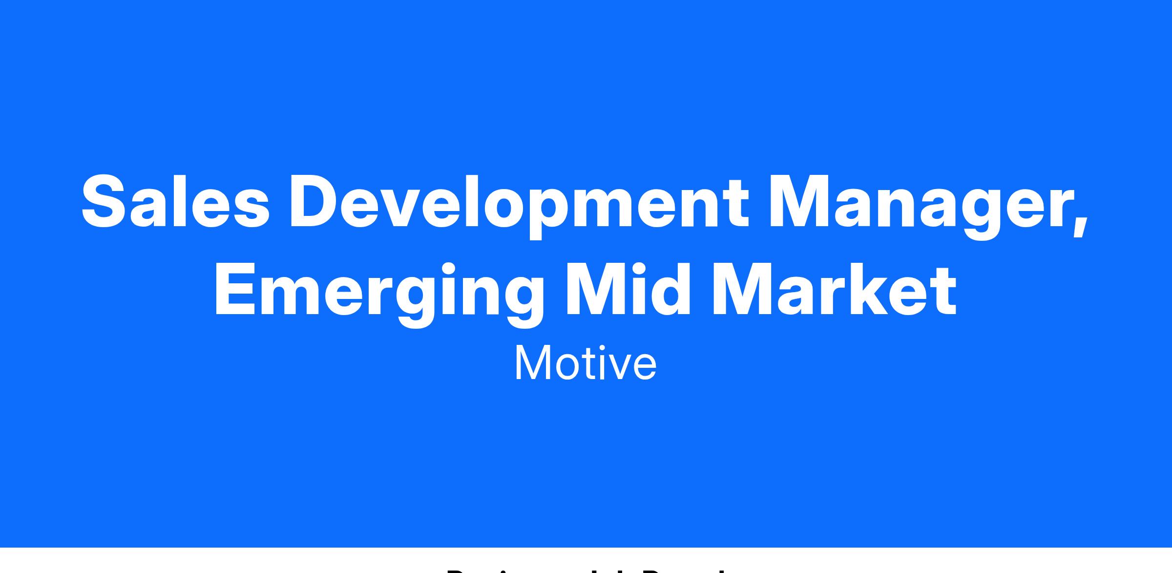 Being passionate about the growth of your team and their continued success is a must. You will also collaborate closely with the Account Executive and Regional Sales Managers, Marketing, Sales Operations, and Business Intelligence to drive alignment and build qualified pipeline.