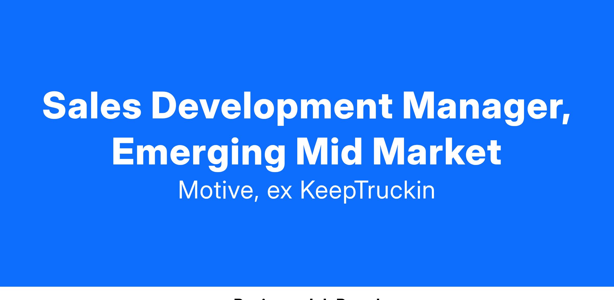 Being passionate about the growth of your team and their continued success is a must. You will also collaborate closely with the Account Executive and Regional Sales Managers, Marketing, Sales Operations, and Business Intelligence to drive alignment and build qualified pipeline.