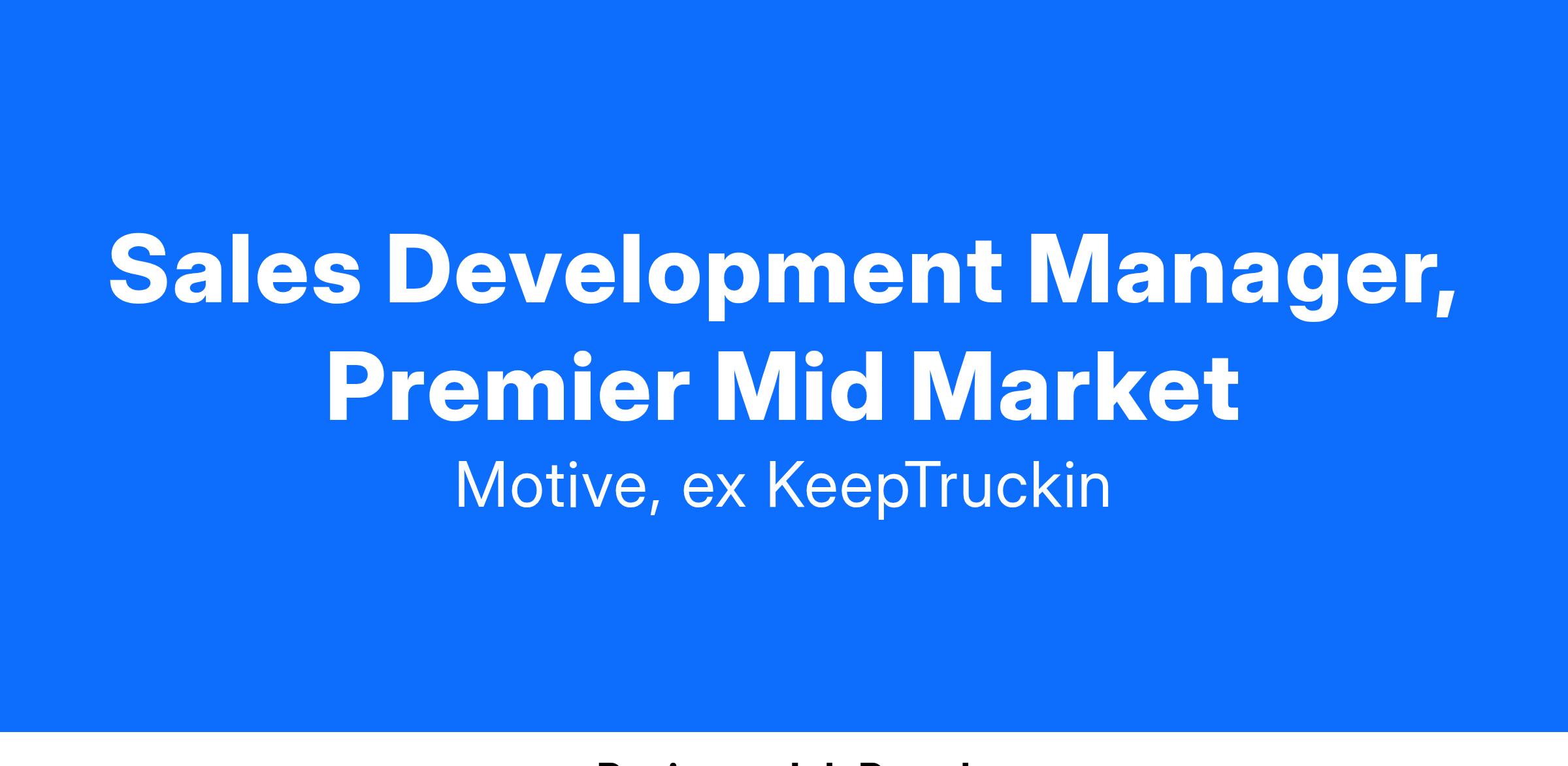 - 2+ years of high performing Sales Development Leadership experience and outperforming expectations (previous management experience a plus) is preferred