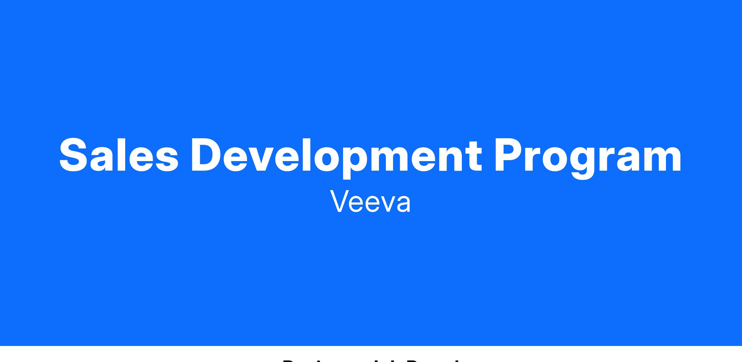 If you’re looking to start and grow your career in a challenging, dynamic, innovative environment, you’ve come to the right place. Veeva’s Sales Development Program (SDP) is a rigorous, comprehensive track dedicated to growing and developing new grads into industry-leading Account Partners.