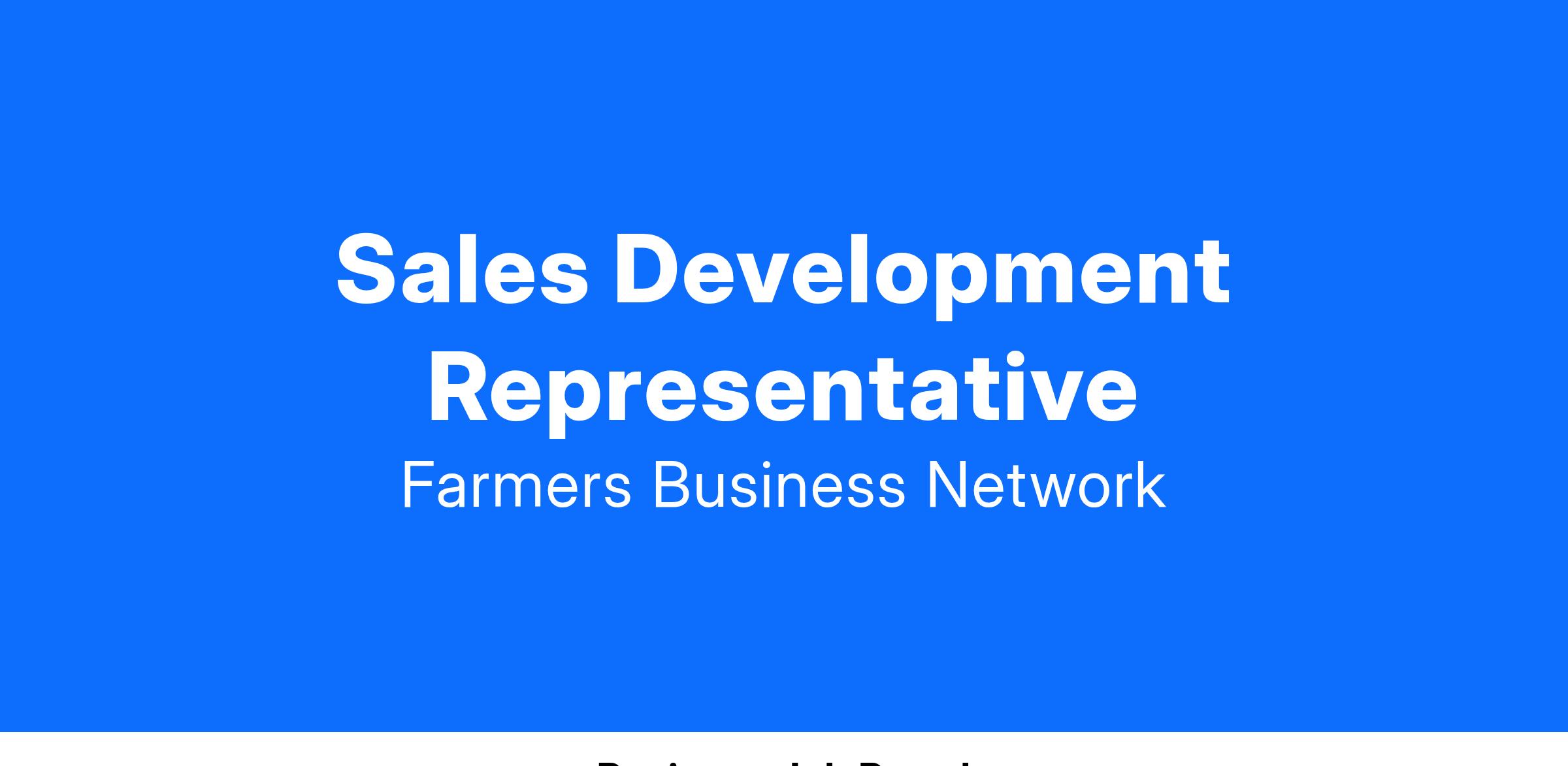 The Sales Development Representative position is a sales role directly responsible for facilitating qualification of non-member and FBN members to the FBN platform for various business lines including; crop protection, seed, livestock, and financial services. This position requires a self-starter who can independently prioritize a sales/execution process involving multiple business objectives and product lines. We are looking for a career minded individual looking to grow their career with multiple advancement opportunities.