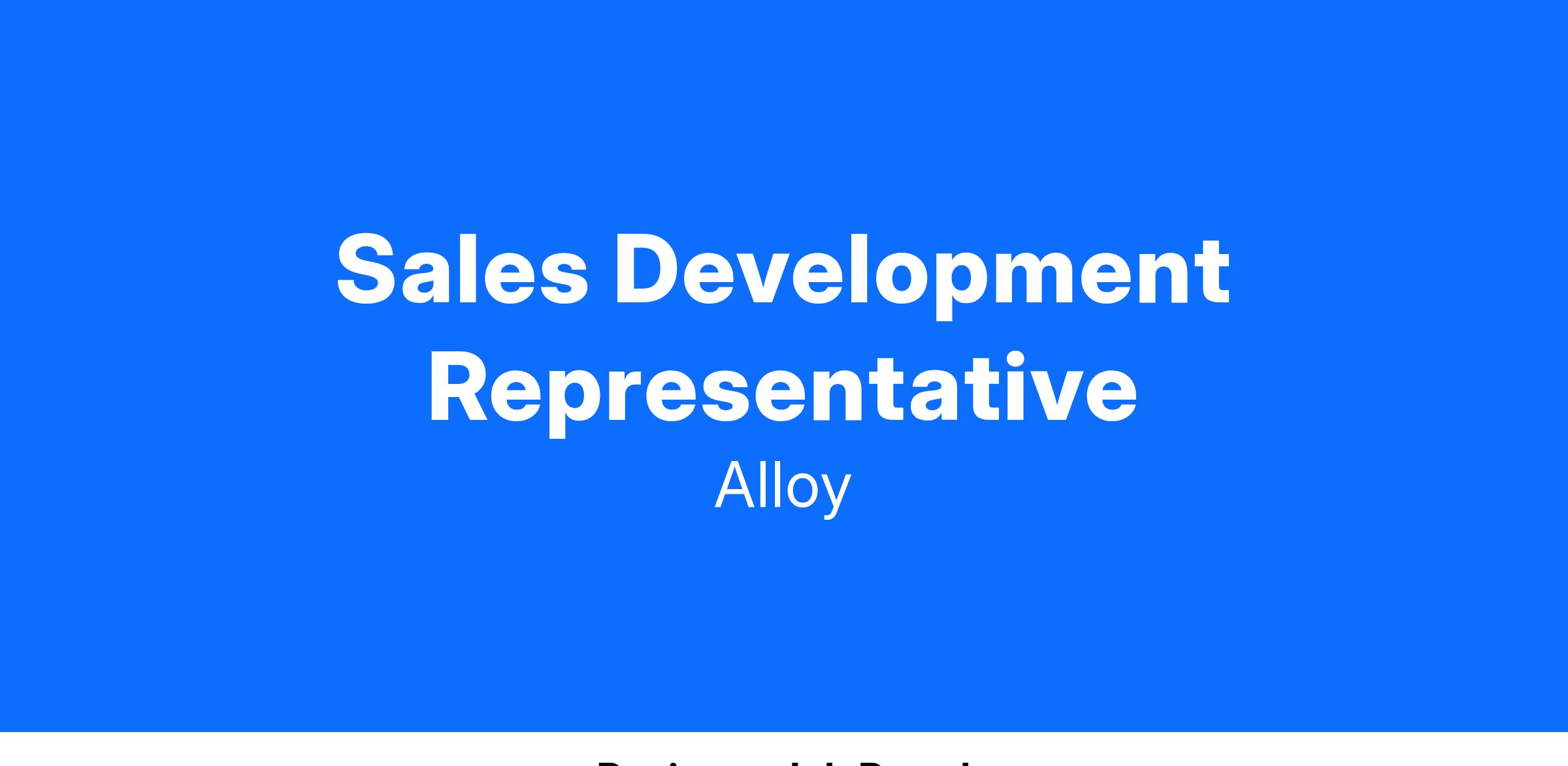 Alloy.ai is looking for a game-changing Sales Development Representative (SDR). In this role, you will work closely with our go-to-market team to shape and develop our target market. You will be responsible for generating our customer pipeline and continuing to fuel our growth.