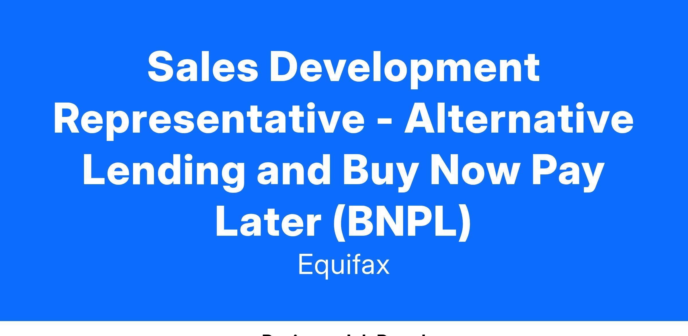 We're looking for a Sales Development Representative (SDR) to join our FinTech, Payments, and Specialty Finance sales team. This role supports all aspects of the company’s sales activities and will prospect and develop qualified sales opportunities specifically within the alternative lending and Buy Now Pay Later (BNPL) space. SDRs are responsible for supporting, winning and developing current and prospective accounts by working closely with the sales teams through, but not limited to, outbound cold-calling efforts (SDR), email campaigns, and/or inbound lead qualification.