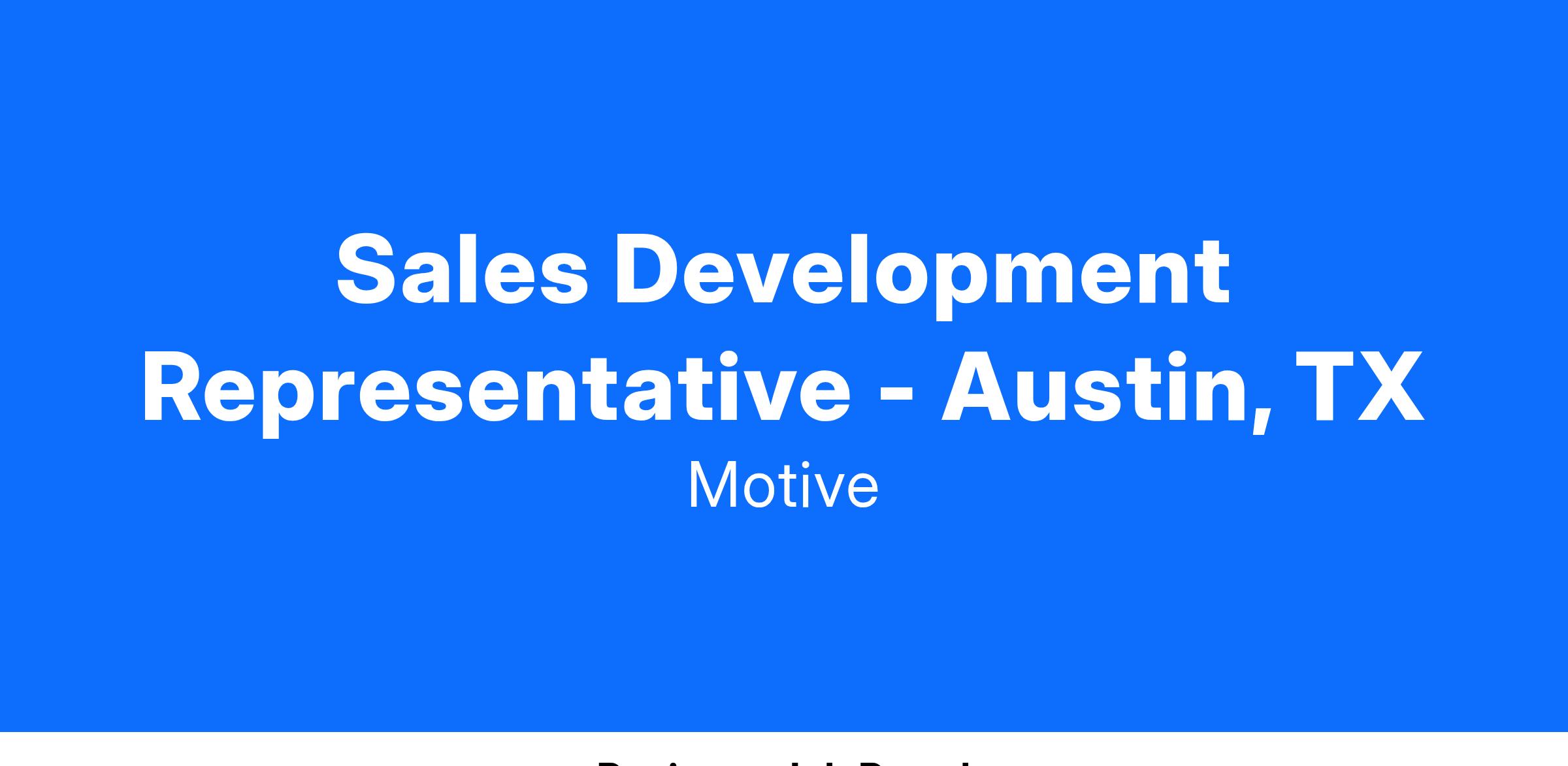 Sales Development Representative - Austin, TX