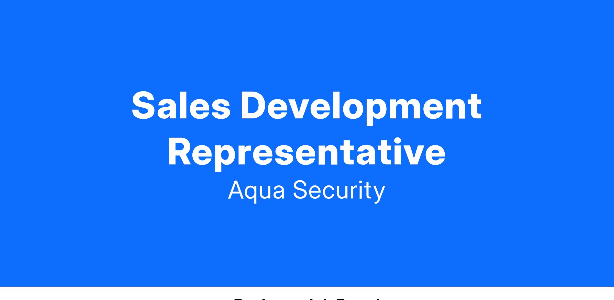 Launch your career in security tech sales through our Aqua Sales Development Program. You will have the opportunity to be challenged, build your sales acumen, and make a meaningful impact. You will be provided sales training which will position you for a successful career in sales. You will be part of a fun, hard-working, and entrepreneurial sales team. We are invested in talent who is committed to growing their sales career in a fast-paced, cutting edge environment…who also likes to have fun along the way.