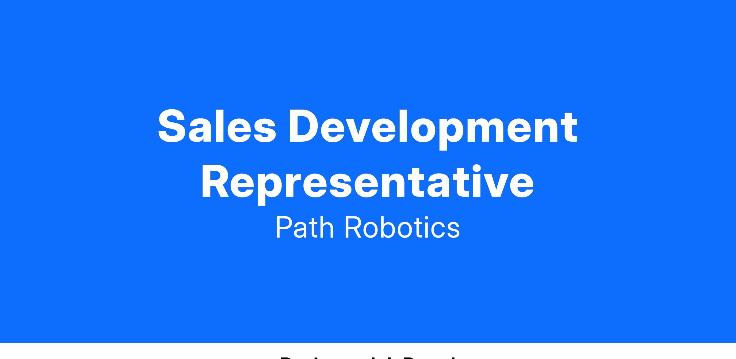We are looking for a highly motivated Sales Development Representative (SDR) to help build and grow the future of manufacturing. You will be at the forefront of driving our sales pipeline, identifying and engaging potential customers, and effectively communicating the value and mission of Path Robotics. If you are passionate about tech, robotics, and the future of automation, this is an exciting opportunity to grow with us.