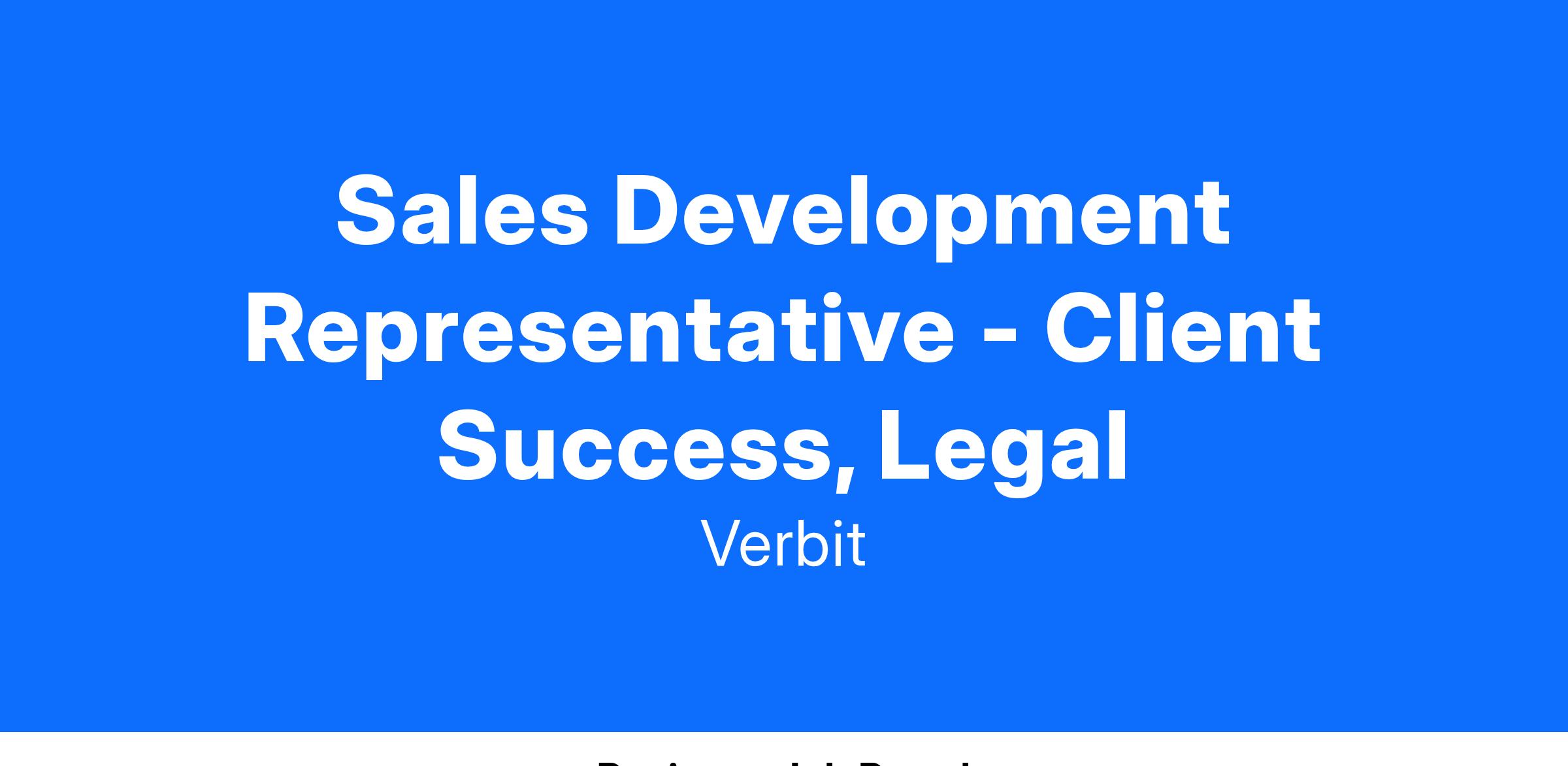 Verbit is a market leader in providing cutting-edge transcription, captioning, and translation solutions, helping industries like legal, education, media, and more to streamline processes and improve efficiency. As we continue to expand, we are looking for a dynamic Sales Development Representative (SDR) to join our Legal team and play a critical role in our growth within the legal sector.