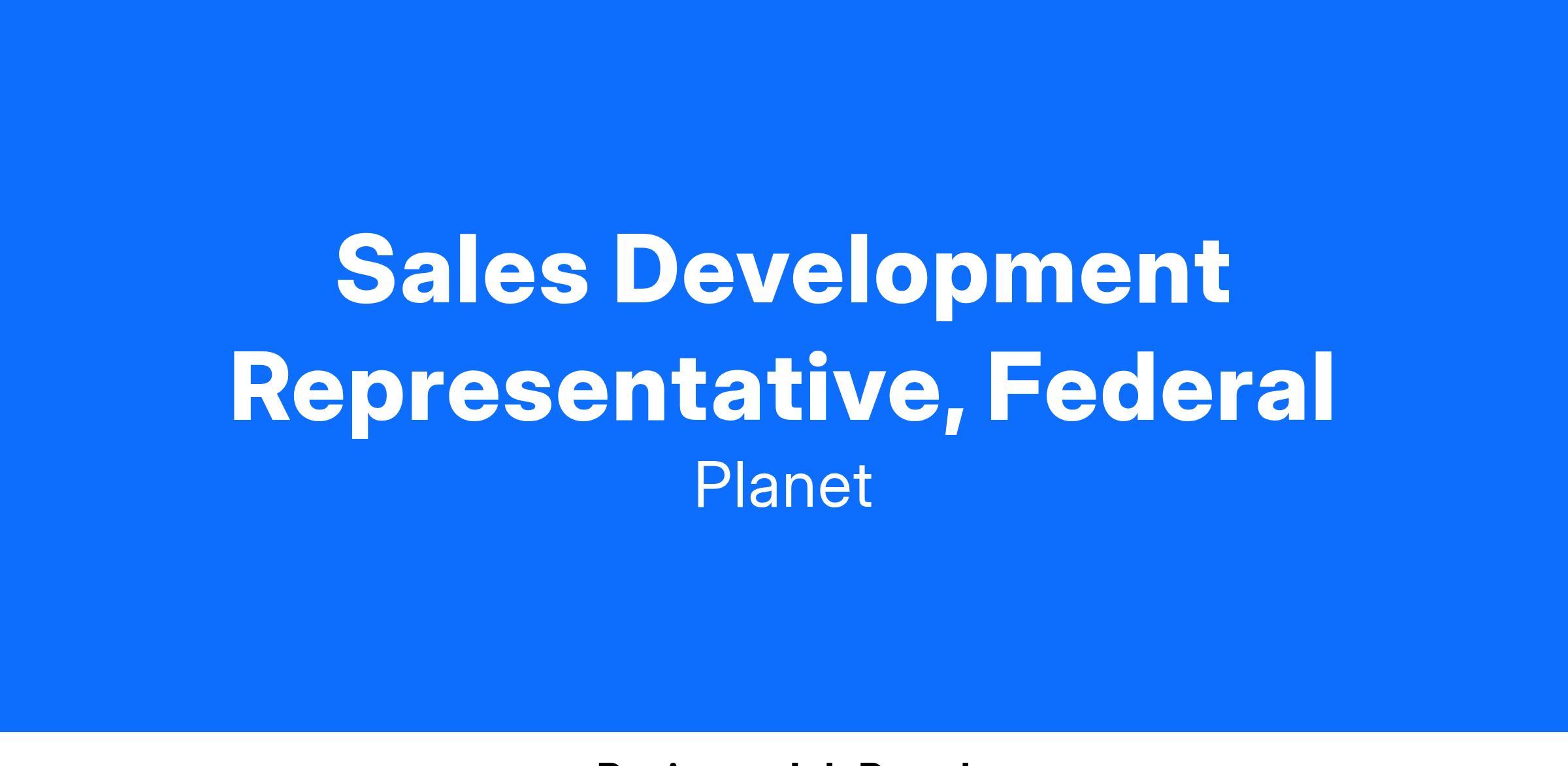 We are looking for a Sales Development Representative (SDR) to support our seasoned Federal Go-to-Market team on our highest value accounts. This key role will contribute to the development and pipeline growth between Planet and our Federal accounts by conducting thoughtful and creative outreach to a range of key stakeholders within the Federal and Department of Defense (DoD) ecosystem, generating new and expansion revenue. As a foundational member of a high growth business unit, you will have the opportunity to contribute to strategy, account planning, and relationship development for a prestigious sales organization.