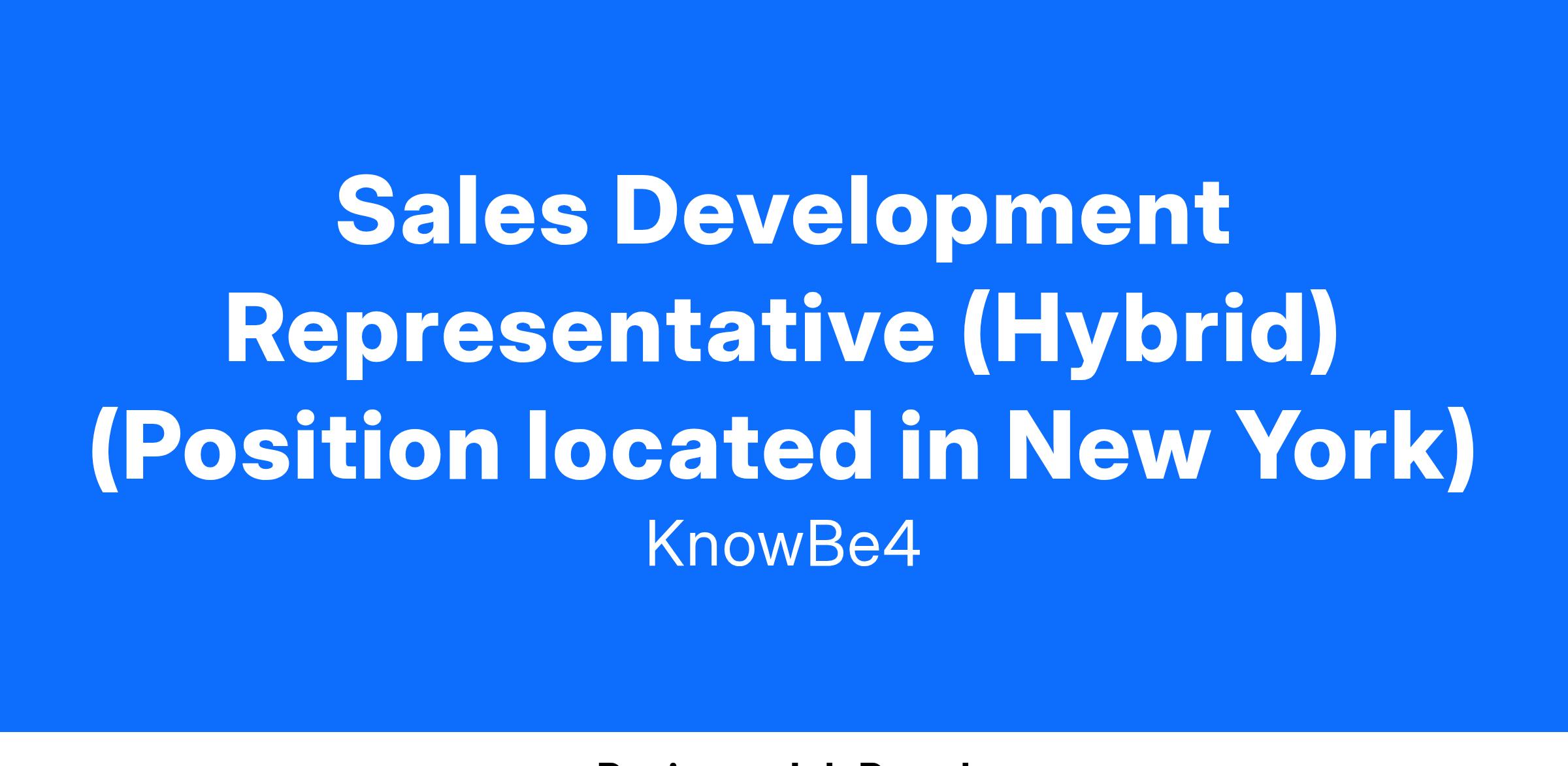Individuals seeking employment at KnowBe4 are considered without prejudice to race, color, religion, national origin, age, sex, marital status, ancestry, physical or mental disability, veteran status, gender identity, sexual orientation or any other characteristic protected under applicable federal, state, or local law. If you require reasonable accommodation in completing this application, interviewing, completing any pre-employment testing, or otherwise participating in the employee selection process, please visit www.knowbe4.com/careers/request-accommodation.