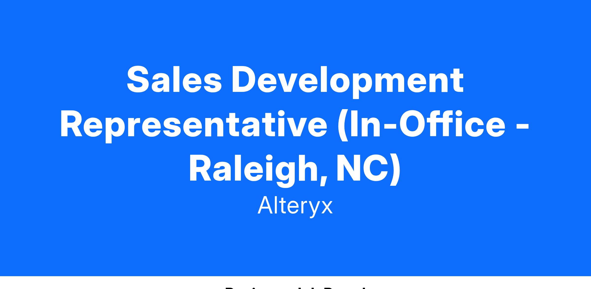 Strong business acumen and the ability to quickly assess and understand a prospect or customer’s business environment and needs and apply the business value of Alteryx is essential to success in this role. Ideal candidates possess the aptitude to easily engage and establish rapport executives and line of business professionals.
