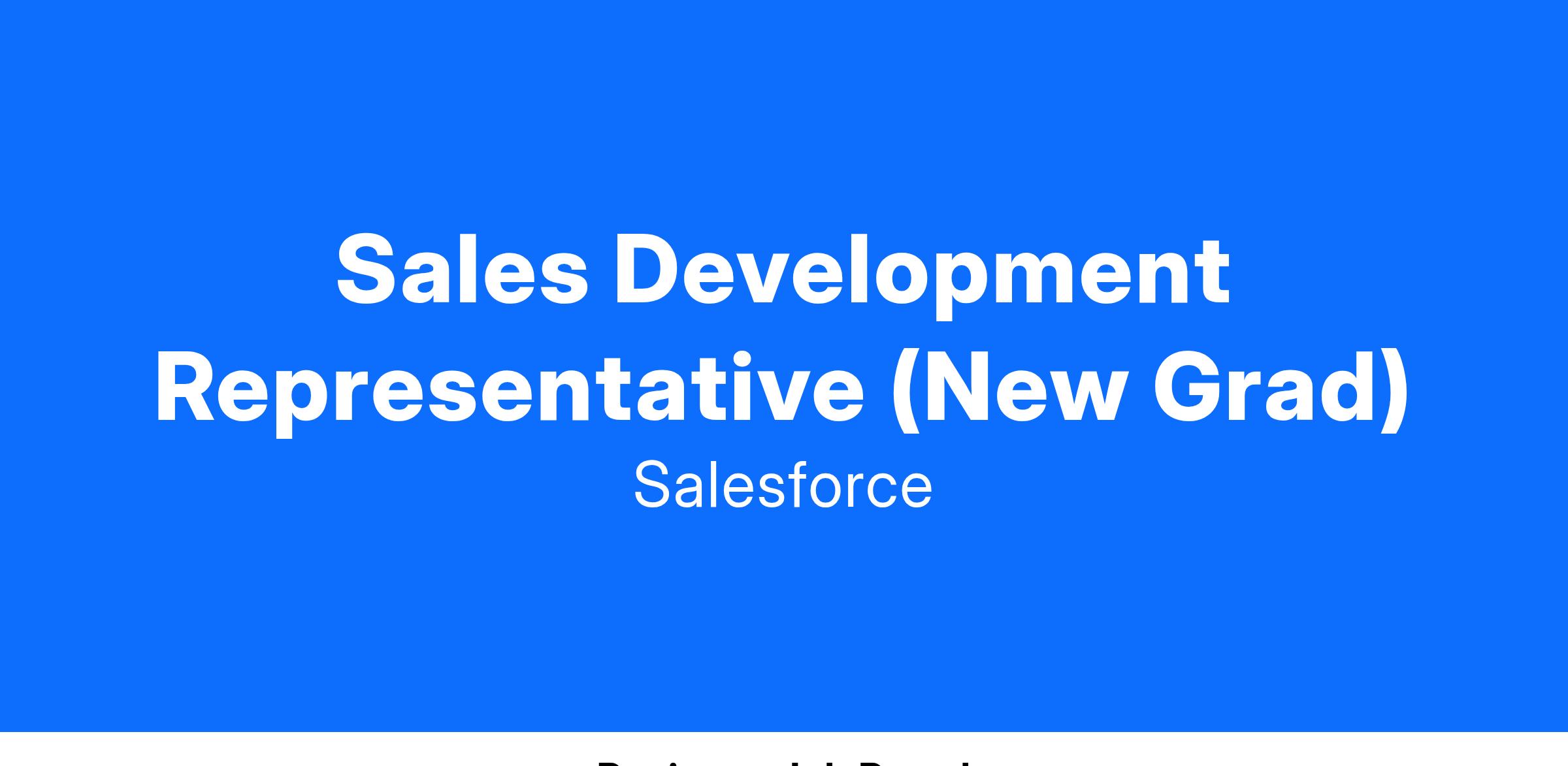 Are you looking for a fulfilling career empowering companies to connect with their customers in a whole new way? As a Sales Development Representative, you will join our elite sales team and do just that! You will learn how to evangelize Salesforce, the Customer Success Platform and World’s #1 CRM, by researching and identifying net-new business opportunities — you will have a direct impact in our revenue generation goals. This role is an exciting opportunity for you to develop your core sales skills and business acumen as you work alongside industry sales leaders.