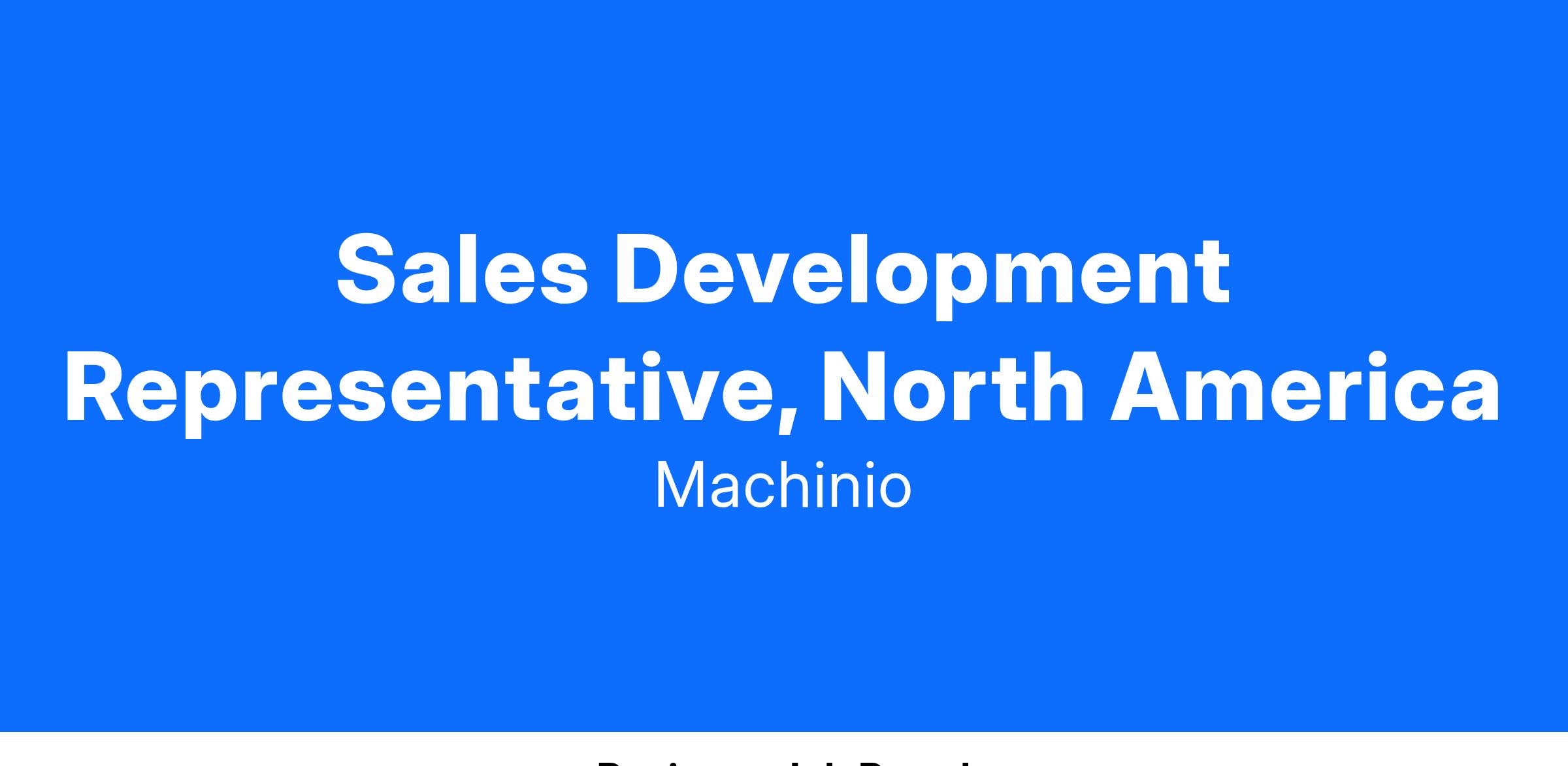 The Sales Development Representative position at Machinio is critical to the growth of Machinio's software product: Machinio System. This role is the perfect opportunity for someone looking to get their foot in the door with a tech company that is scaling a SaaS product. The SDR team is an exciting and high-performance team of A-players, and the right candidate for this role will be eager to learn, thrive in a fast-paced environment, and want to make an immediate impact! As an SDR, you will learn how to establish new client relationships fro scratch, how to take those relationships to a certain point of the sales cycle, and how to collaborate with other members of the team to generate new revenue. This is an opening role (you will be solely opening up opportunities at first) and it offers a clear path to grow and transition into becoming a Business Development Executive in 14-18 months.