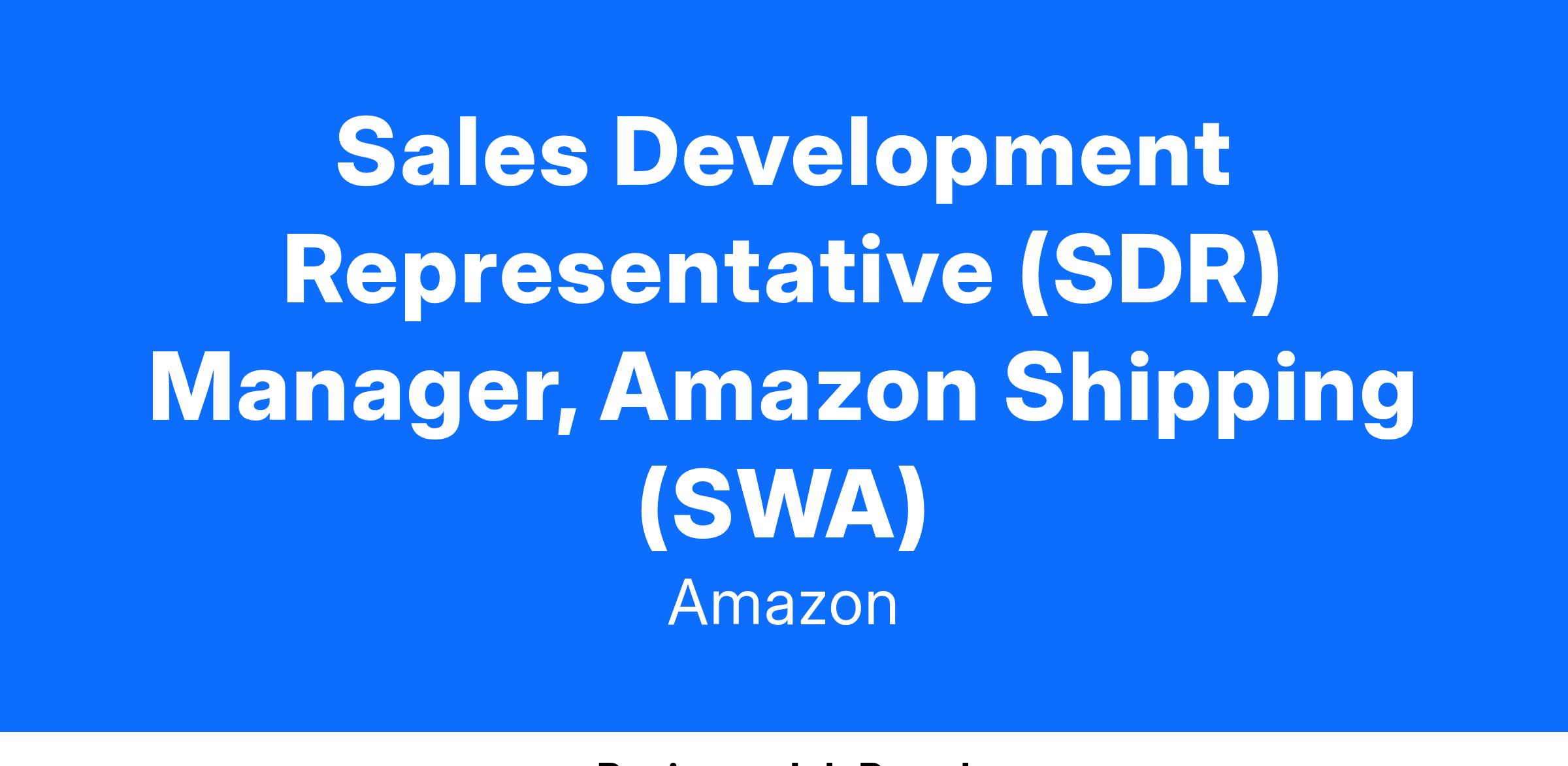 Sales Development Representative (SDR) Manager, Amazon Shipping (SWA)