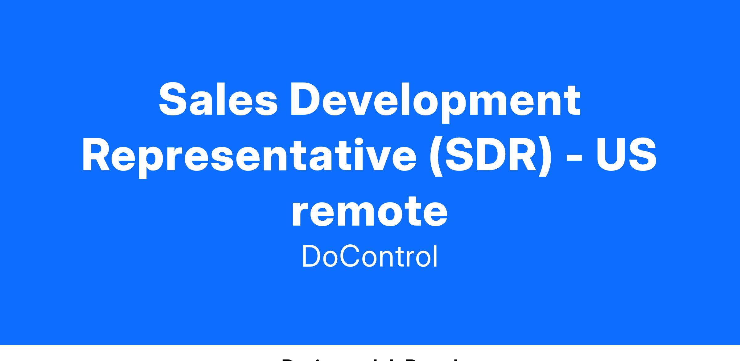 We are looking for a Sales Development Representative (SDR) to join our team.