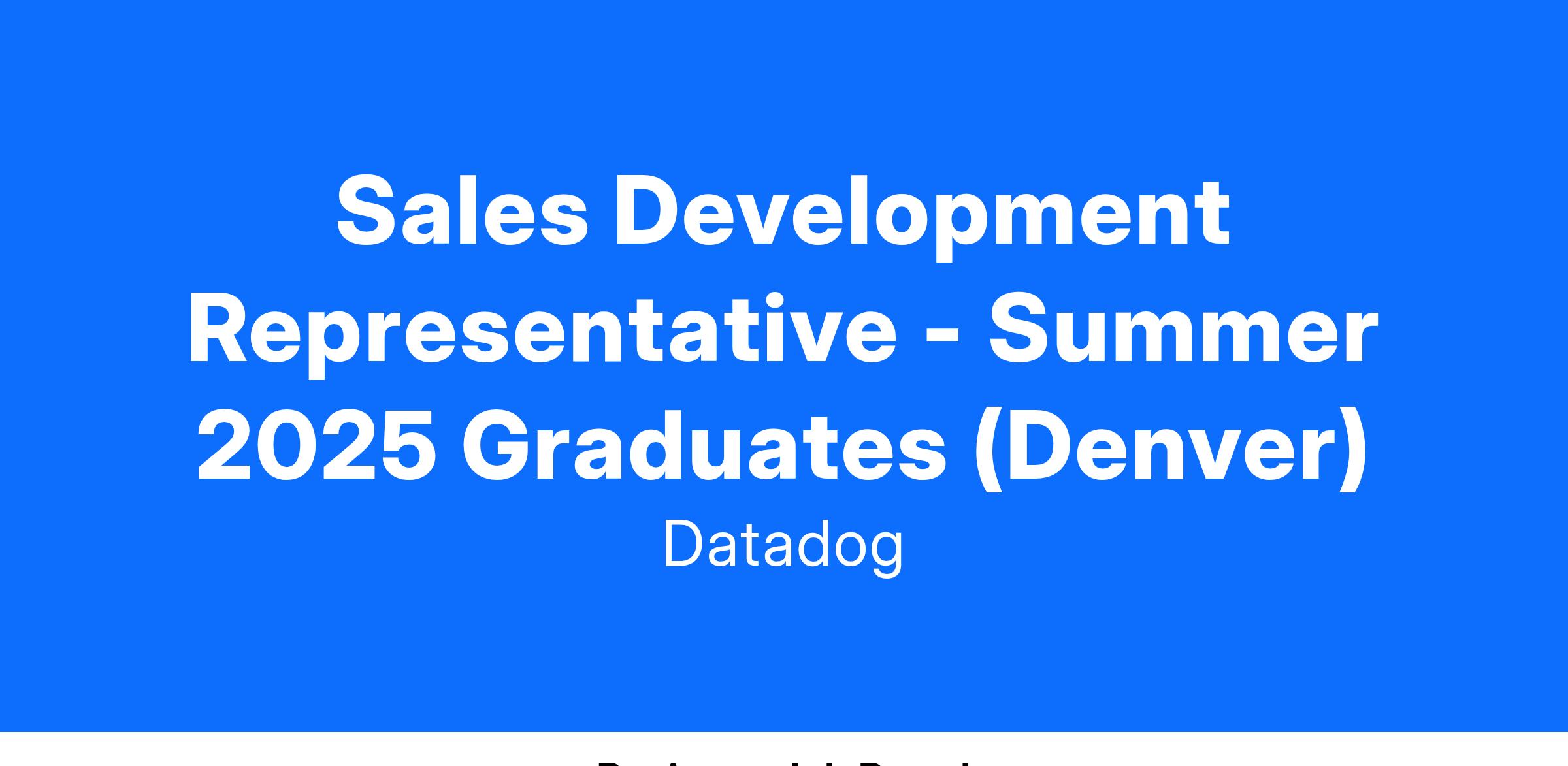 As a Sales Development Representative (SDR) on our Sales team, you will prospect, qualify, and generate customer leads to assist in Datadog’s overall business growth. By partnering with internal stakeholders, you will help IT and Technology innovators across markets recognize Datadog’s impact in their digital transformation and migration to the cloud. SDRs have the opportunity to grow their careers in Sales and continue contributing to Datadog team success.