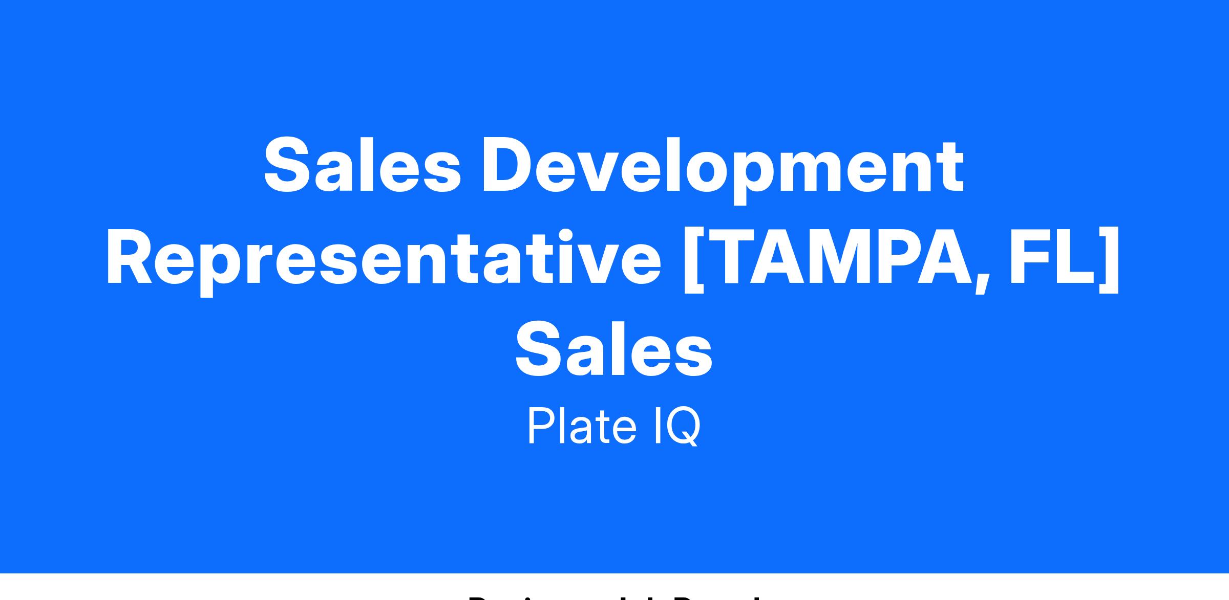 The Sales Development Representative role is perfect for ambitious, high-energy professionals eager to make a big impact. You'll drive Plate IQ’s sales by sourcing, contacting, educating, and qualifying prospects via phone, email, and social channels.