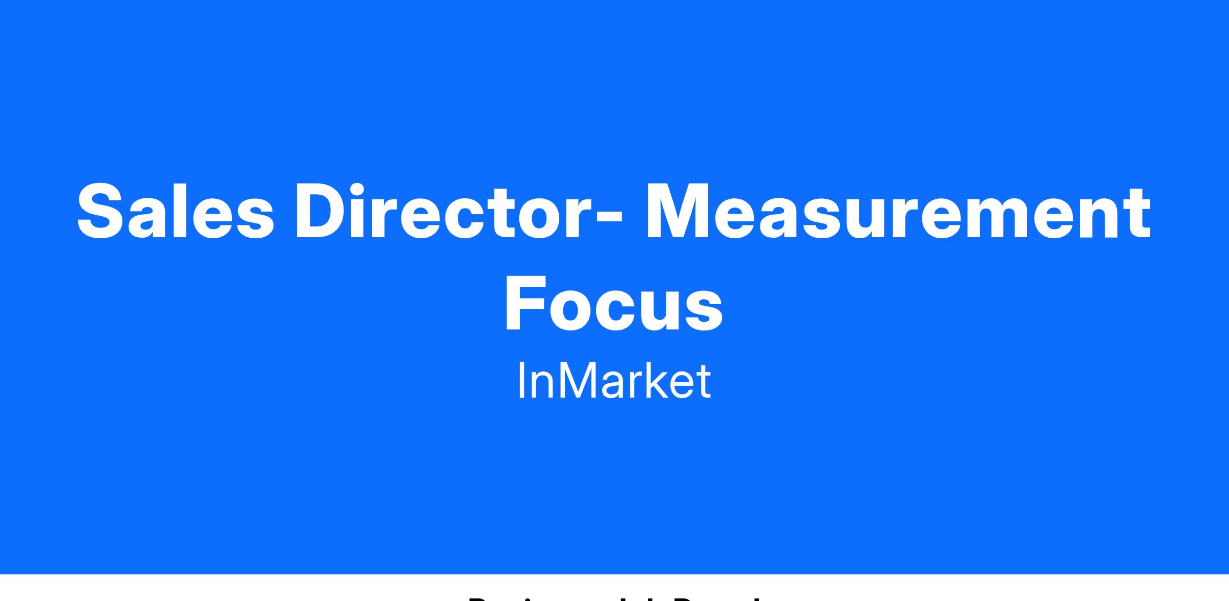 InMarket is seeking a talented, and motivated Sales Director. You will call on brands and agencies selling our suite of location-derived solutions, including: measurement, data insight, and media products. You will focus on building in-roads directly with brands and with agency teams. You will be tasked with expanding & evangelizing our products while educating senior marketers on the value of our data and attribution offerings.